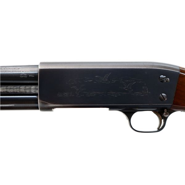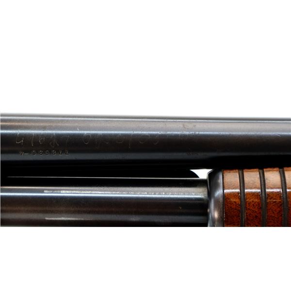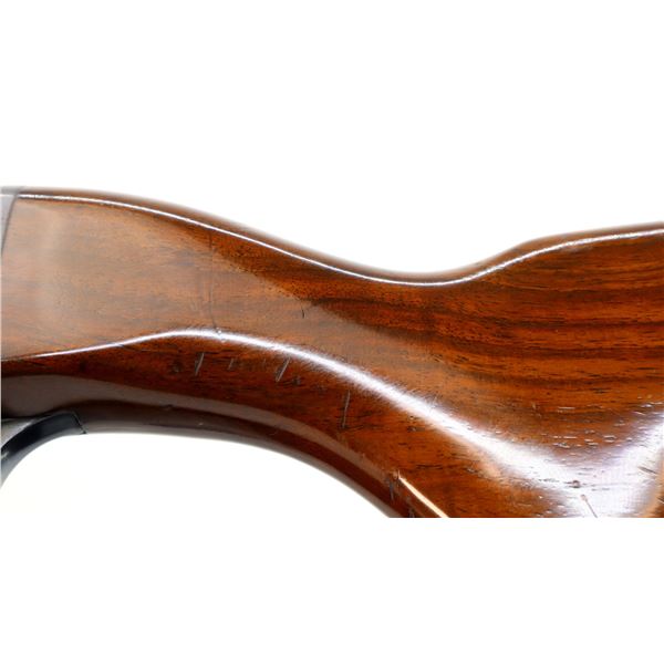 Main Description: Orange front bead, blued finish, round barrel, engraved receiver. Two piece wood stocks, grooved forearm, pistol grip, grooved black polymer butt plate
