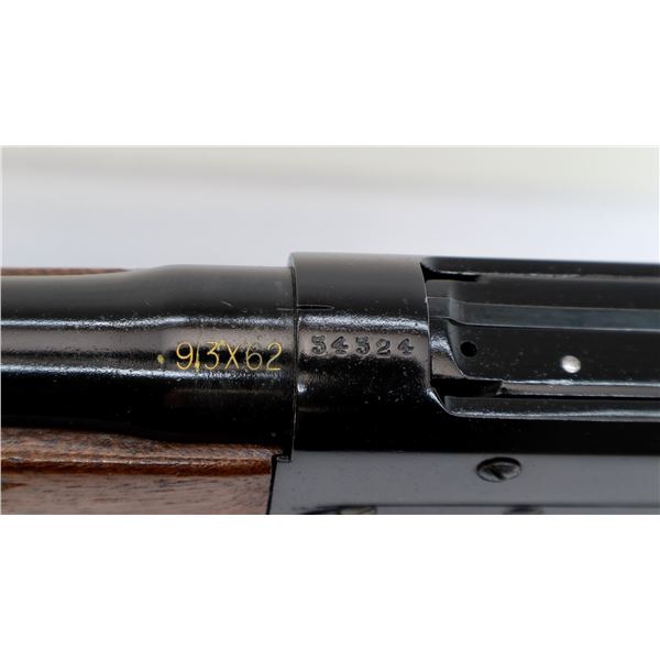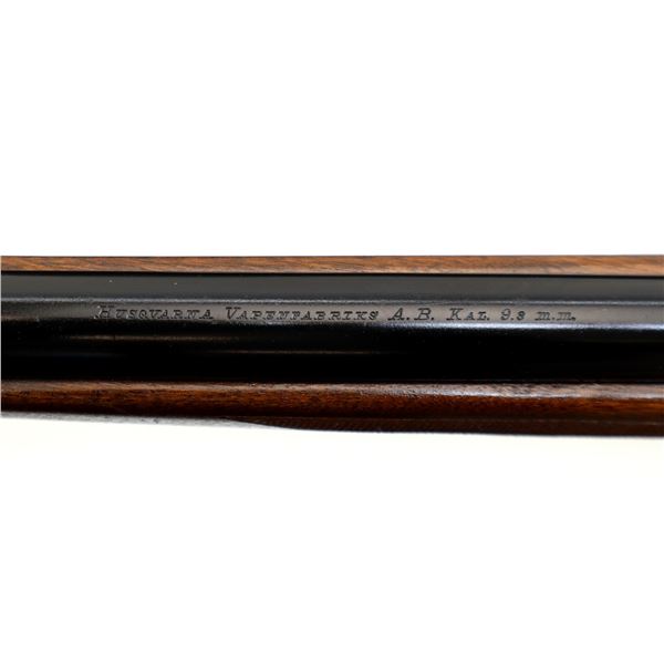 Main Description: This rifle has been rebarrelled with a Husqvarna barrel, serial number on receiver ring, lower tang numbered 7219. Blade front sight with ramp, adjustable u notched rear sight with ramp, black cerakote metal finish, checkered spur hammer. Two piece custom wood stocks, Rosewood Schnabel forend tip, checkered forearm and straight grip, black rubber recoil pad, 13.75" LOP, missing mainspring tension screw. Has front sling swivel only.