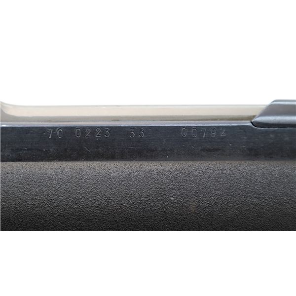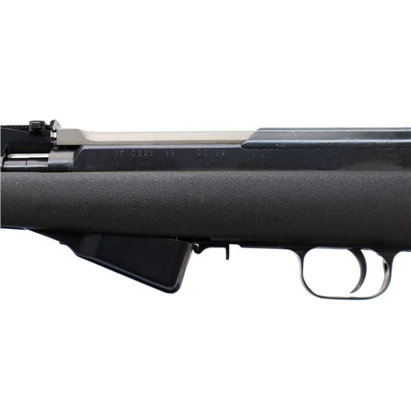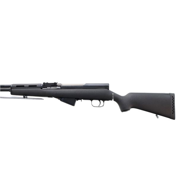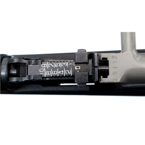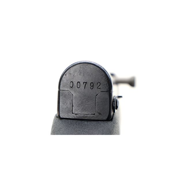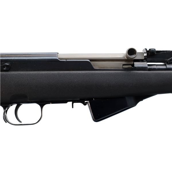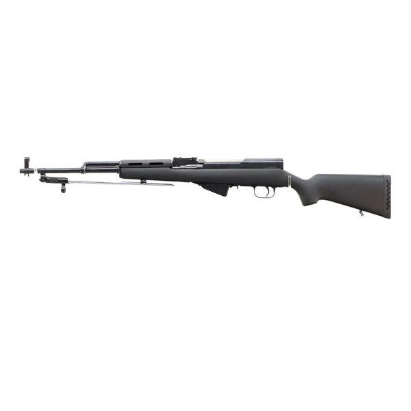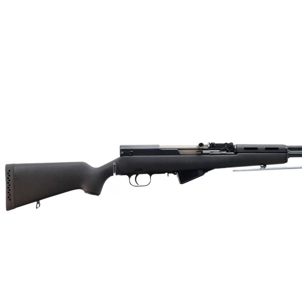 Main Description: Visible numbers match. Post front sight with hood and ramp, adjustable u notched rear sight, blued finish, silver bolt and carrier. Two piece black synthetic stocks, ventilated handguard, pistol grip, black rubber recoil pad, grip cap, sling swivels, attached folding cruciform bayonet, missing cleaning rod.