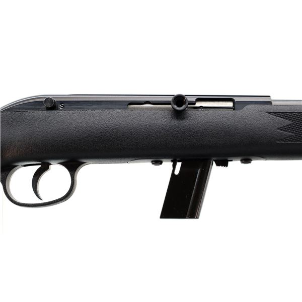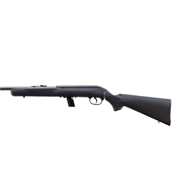 Main Description: Blade front sight, adjustable u notched rear sight, blued finish, grooved receiver and bolt knob. One piece black synthetic stock, checkered forearm and pistol grip, grooved black polymer butt plate, grip cap, swivel studs.