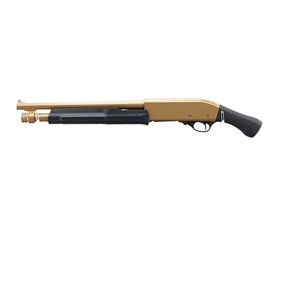 Main Description: Blade front sight, Flat Dark Earth Metal finish, round barrel, alloy receiver. Two piece black synthetic stocks, grooved extended forearm and pistol grip.
