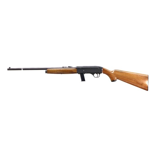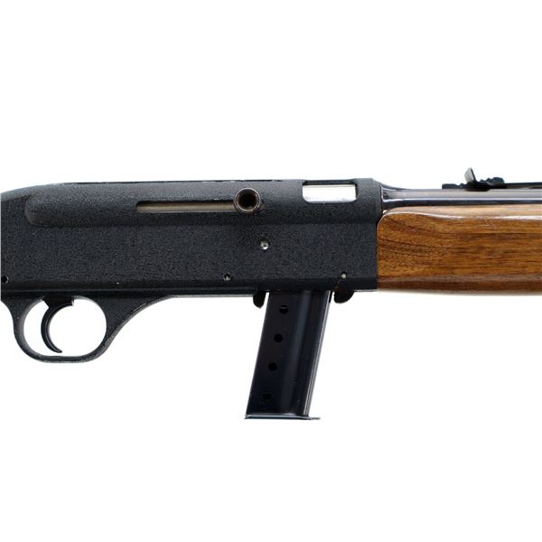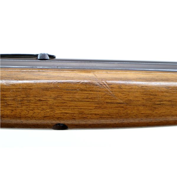 Main Description: Blade front sight, adjustable u notched rear sight, blued round barrel, grooved black painted alloy receiver. Two piece wood stocks, pistol grip, grooved black polymer butt plate, grip cap.
