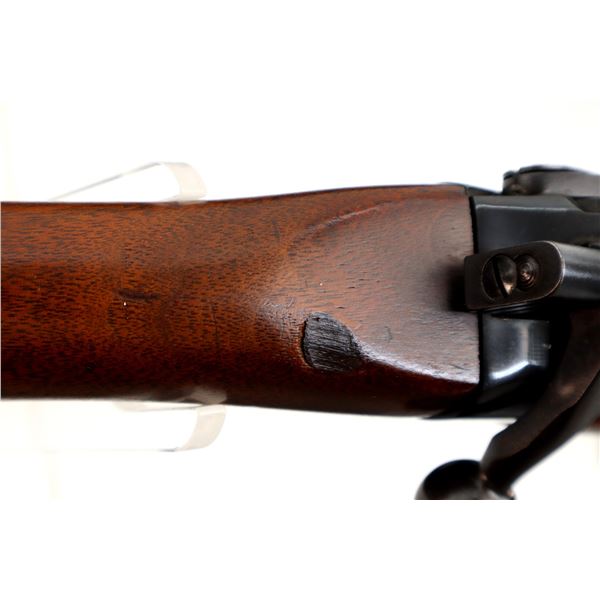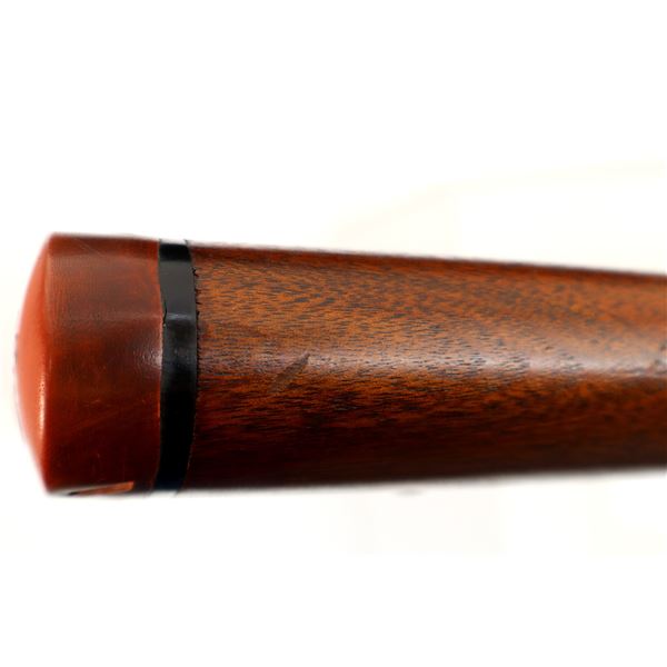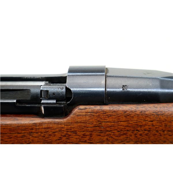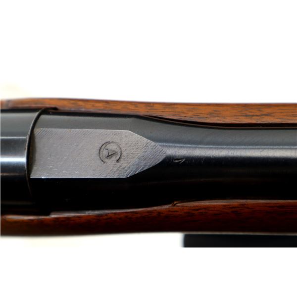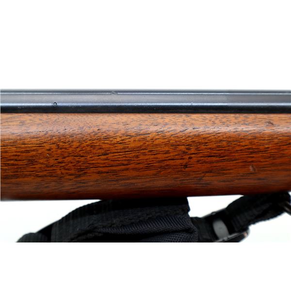 Main Description: Blade front sight with ramp, Two position L-flip rear sight, blued finish, no receiver bridge. Two piece sporter wood stocks, pistol grip, red vented Jostam recoil pad, sling swivels with black nylon sling.