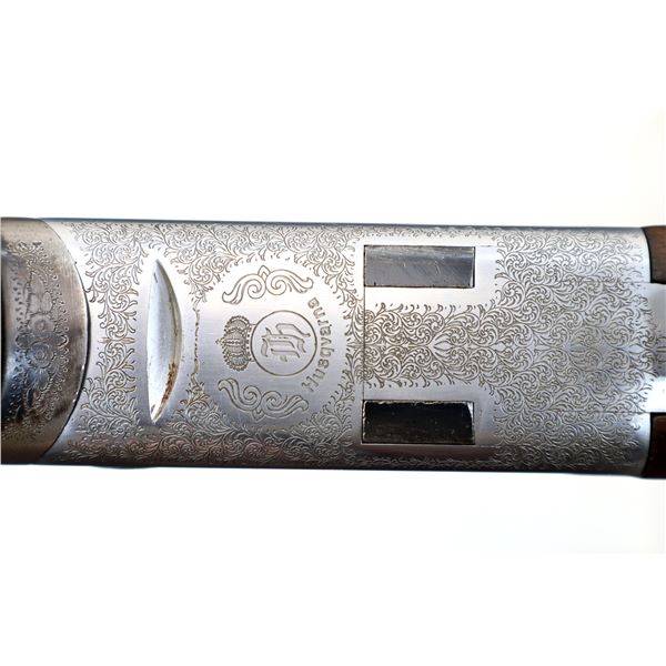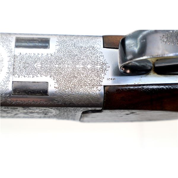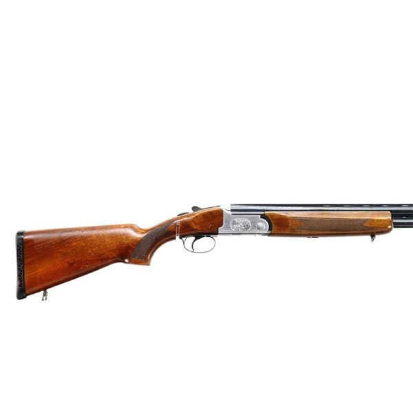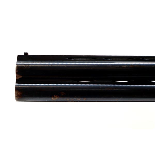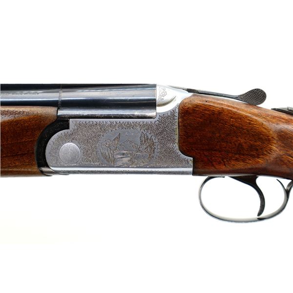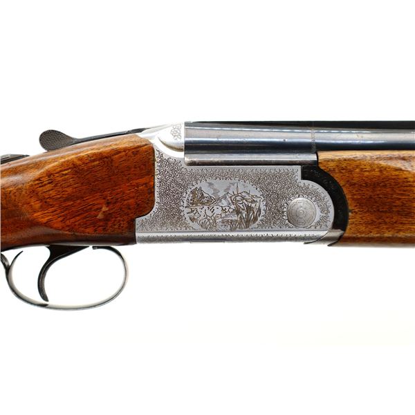 Main Description: Red front and silver mid rib beads, blued wide vent rib barrels, engraved silver receiver, automatic selective safety, ejectors, single mechanical trigger. Two piece wood stocks, checkered forearm and pistol grip, small crack behind trigger guard, black vented rubber recoil pad, 13.75" LOP, sling swivels.