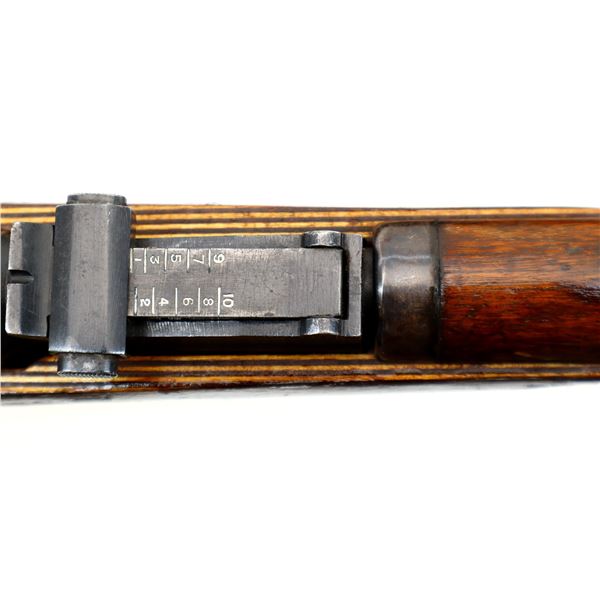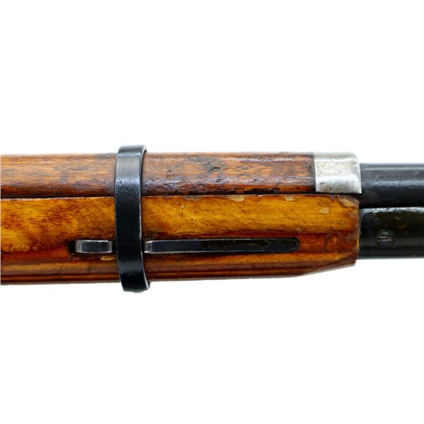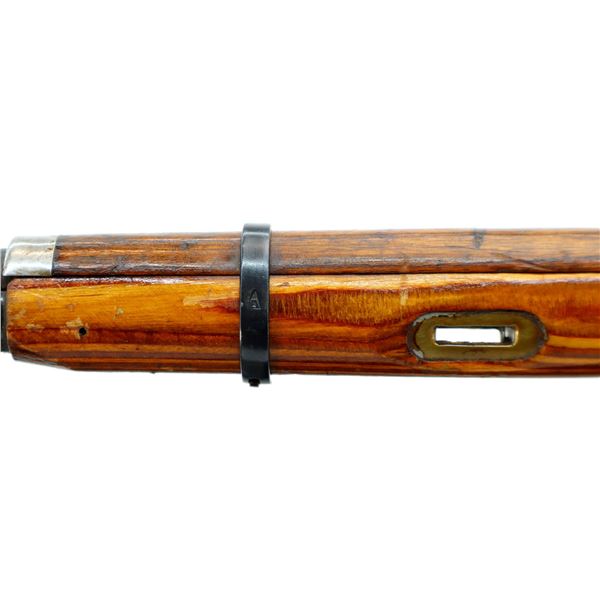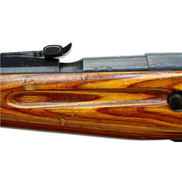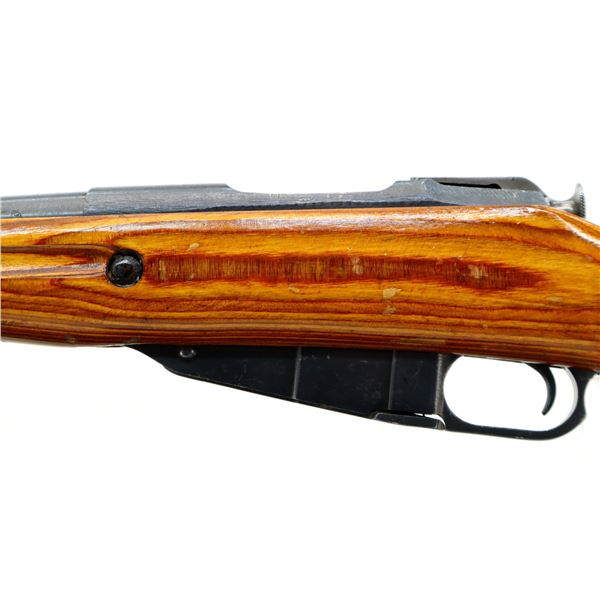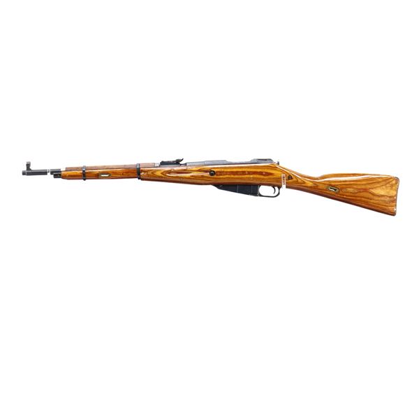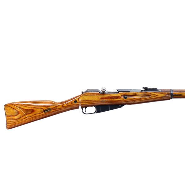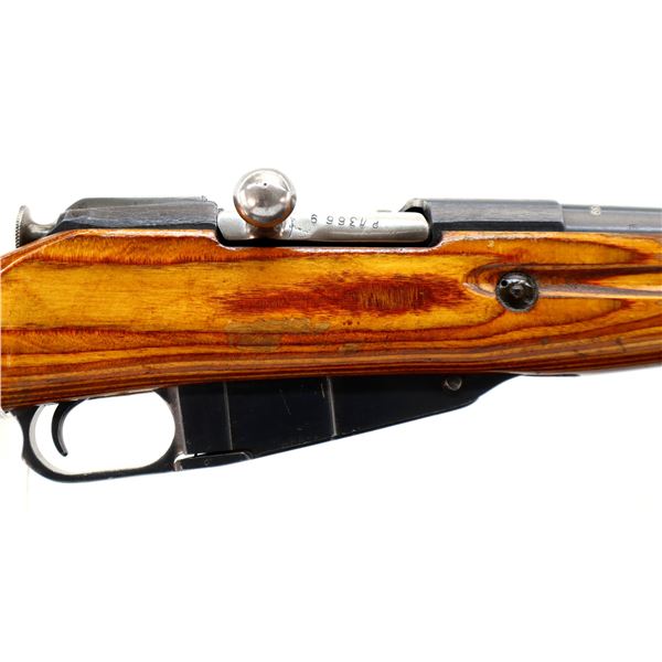 Main Description: Manufactured by Izhevsk 1942, arsenal rebuilt numbered to match. Post front sight with hood and ramp, adjustable u notched rear sight, blued finish, round receiver, silver bolt with straight handle. Two piece full military wood stocks, handguard has arsenal repairs, laminated finger grooved stock, note: does not have cut out for M44 bayonet. Straight grip, smooth steel butt plate, sling slots, missing cleaning rod.