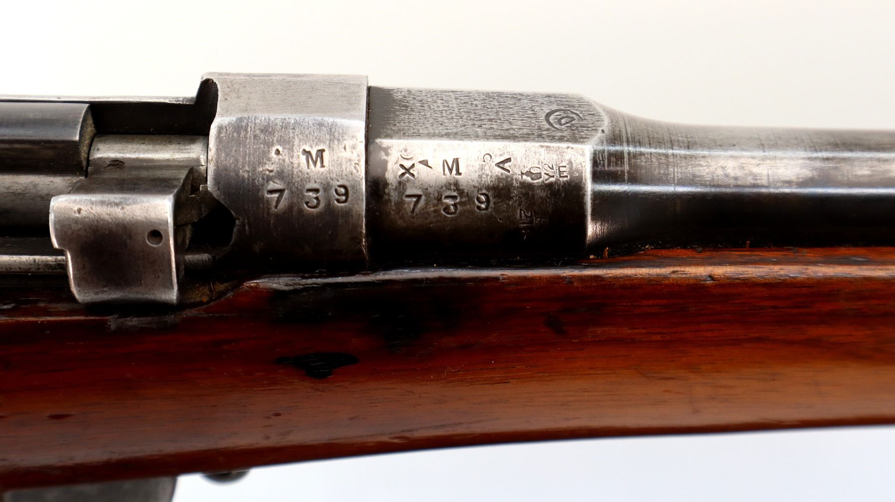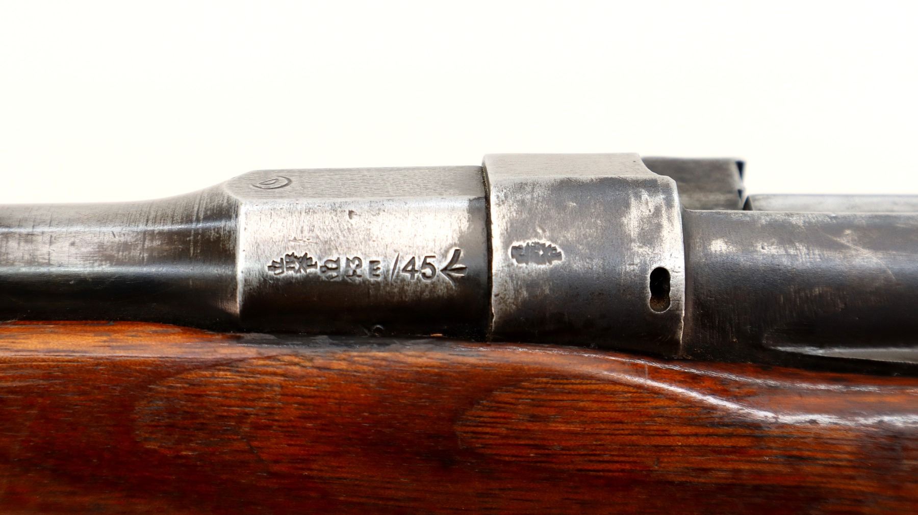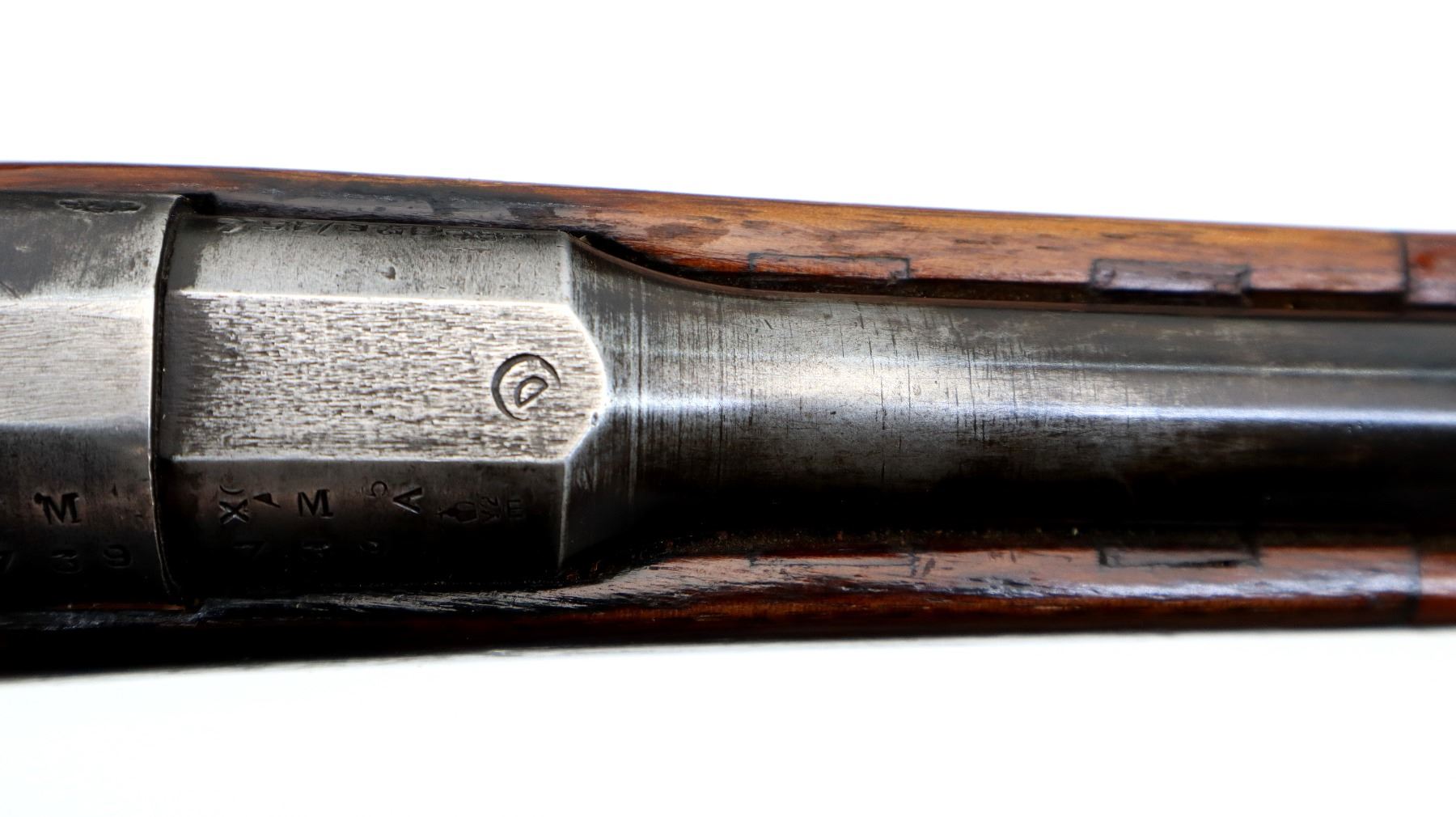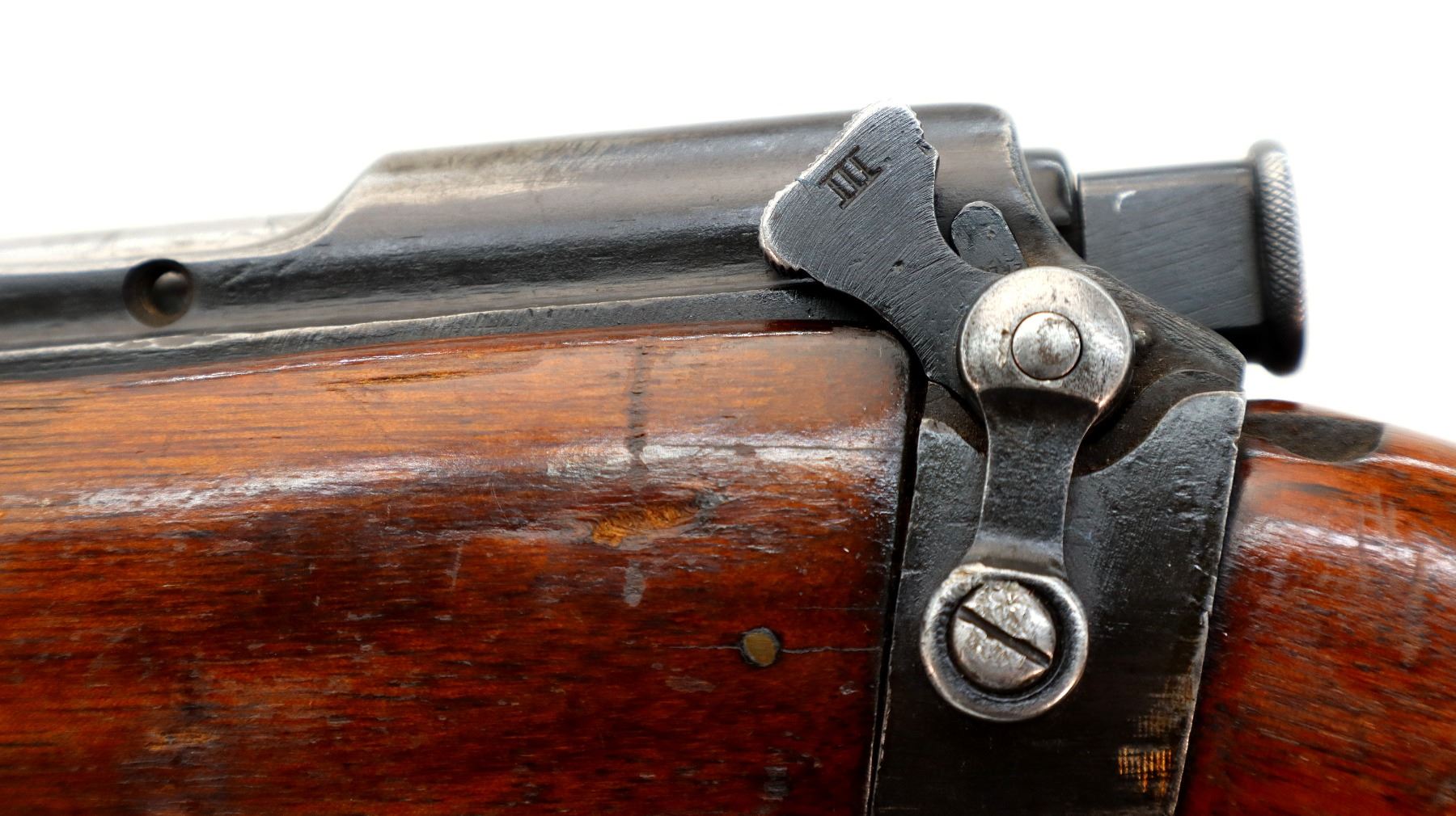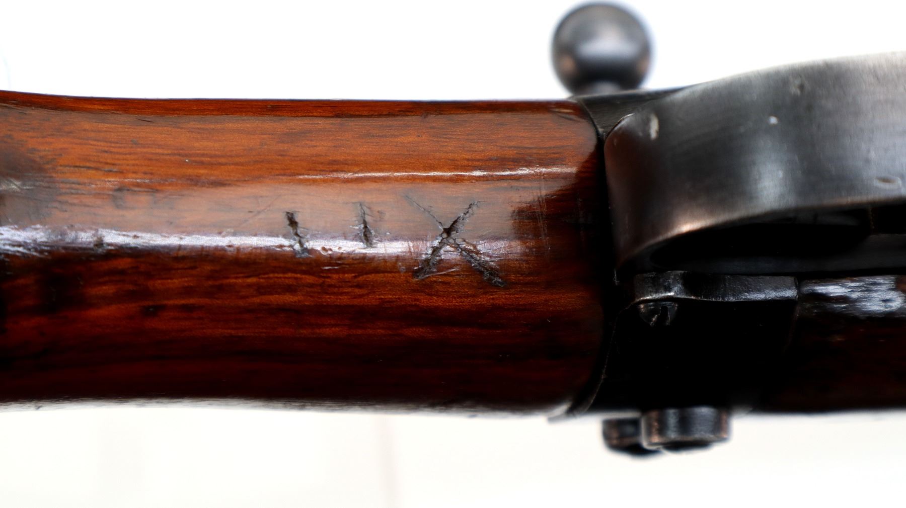 Wear: Metal finish shows some light rust speckles, scratches, handling marks and wear. Stocks show some marks, scratches and wear.