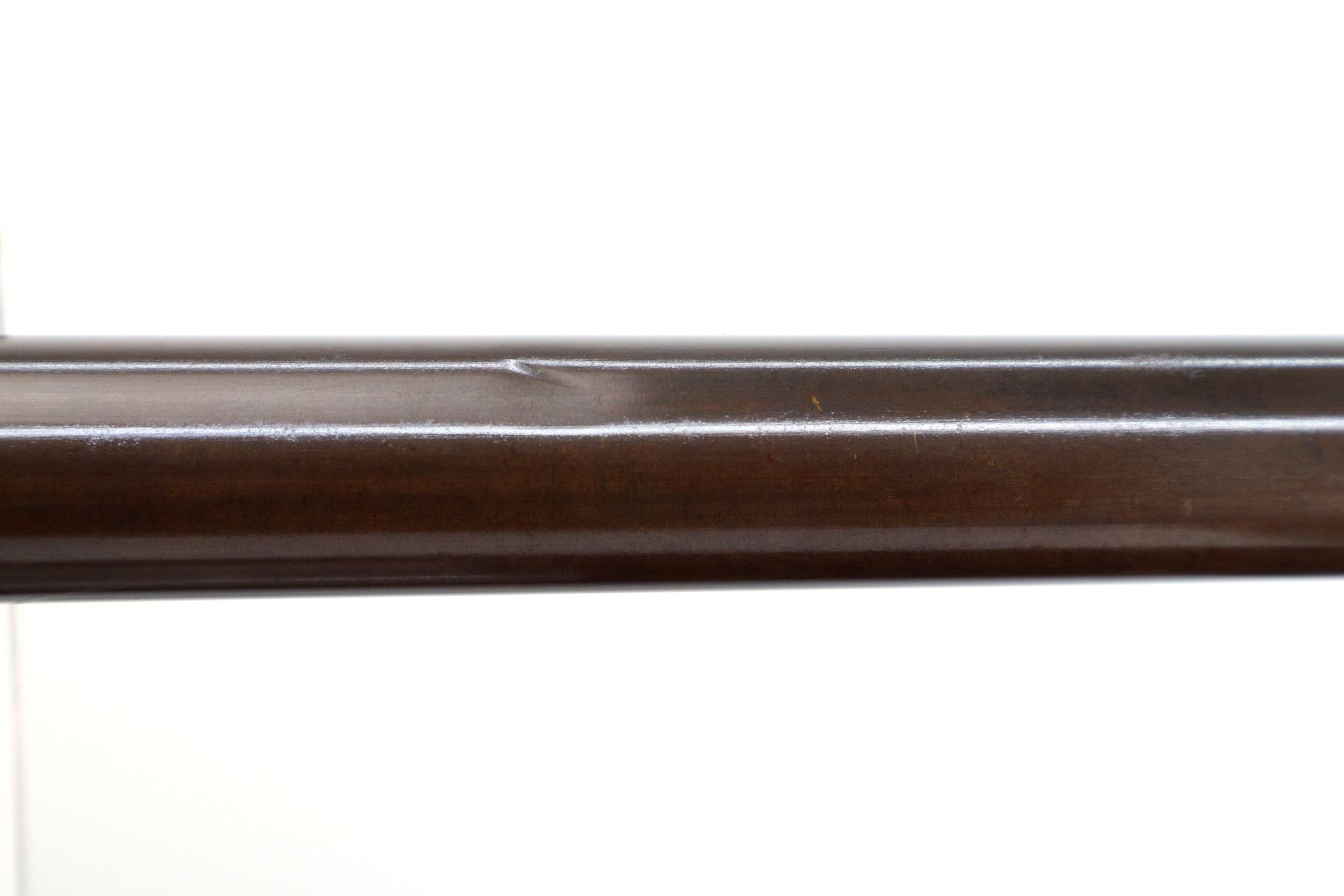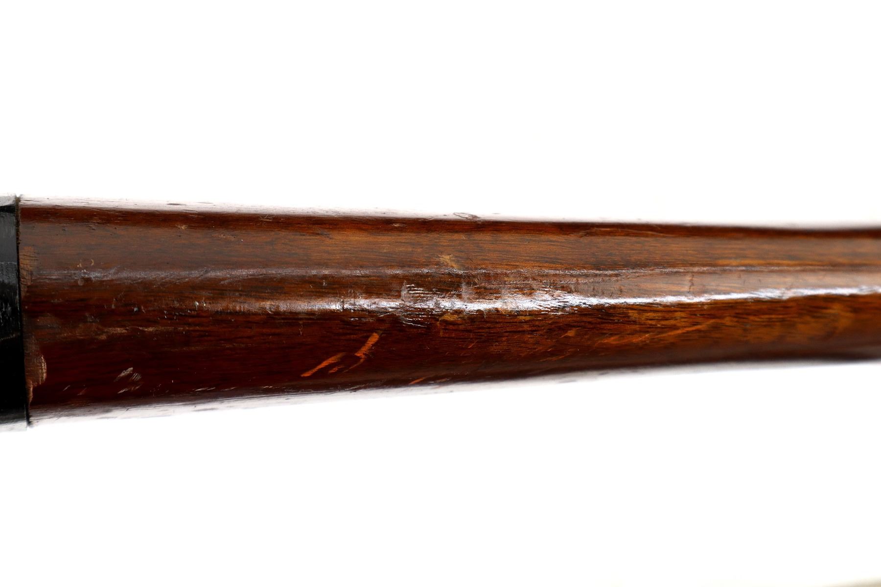 Main Description: Silver bead, round barrel. Two piece wood stocks, grooved forearm, pistol grip, chipped and cracked behind receiver, red vented rubber recoil pad, 13.5" LOP.