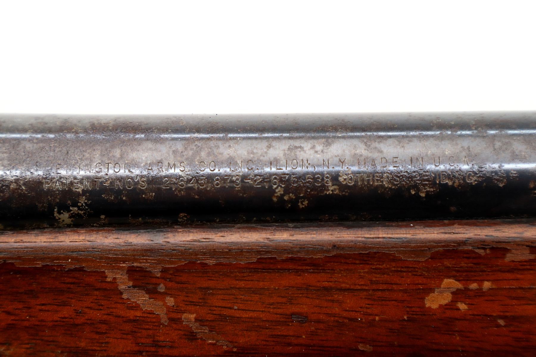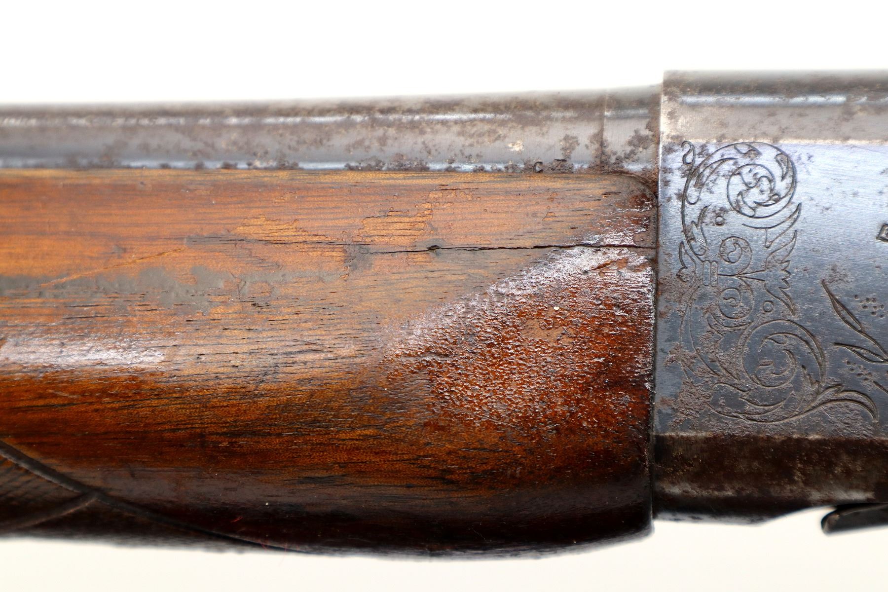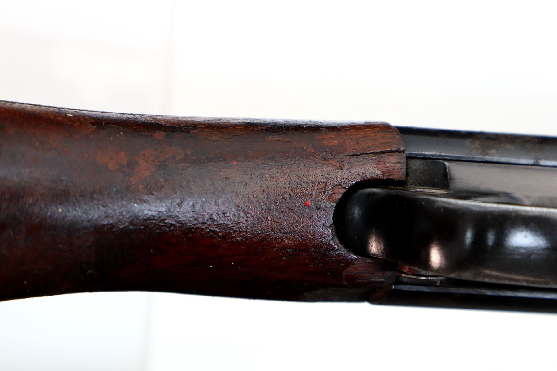 Wear: Metal finish turning brown with pitting, light rust overall, scratches, handling marks and wear. Stocks show marks, scratches and wear.