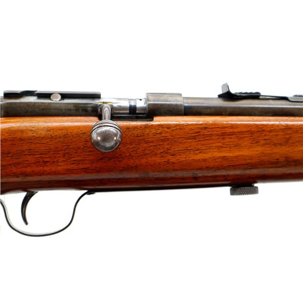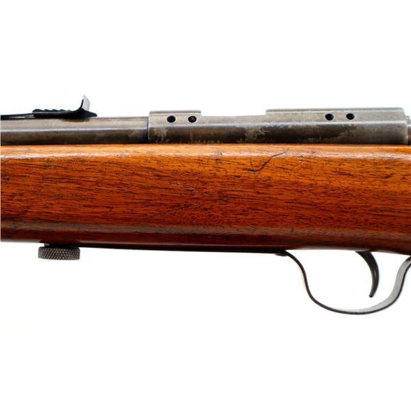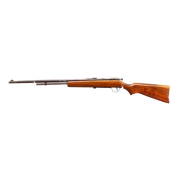 Main Description: Blade front sight, adjustable u notched rear sight, receiver drilled and tapped with no plug screws installed, grooved bolt knob. One piece wood stock, pistol grip, smooth steel butt plate.