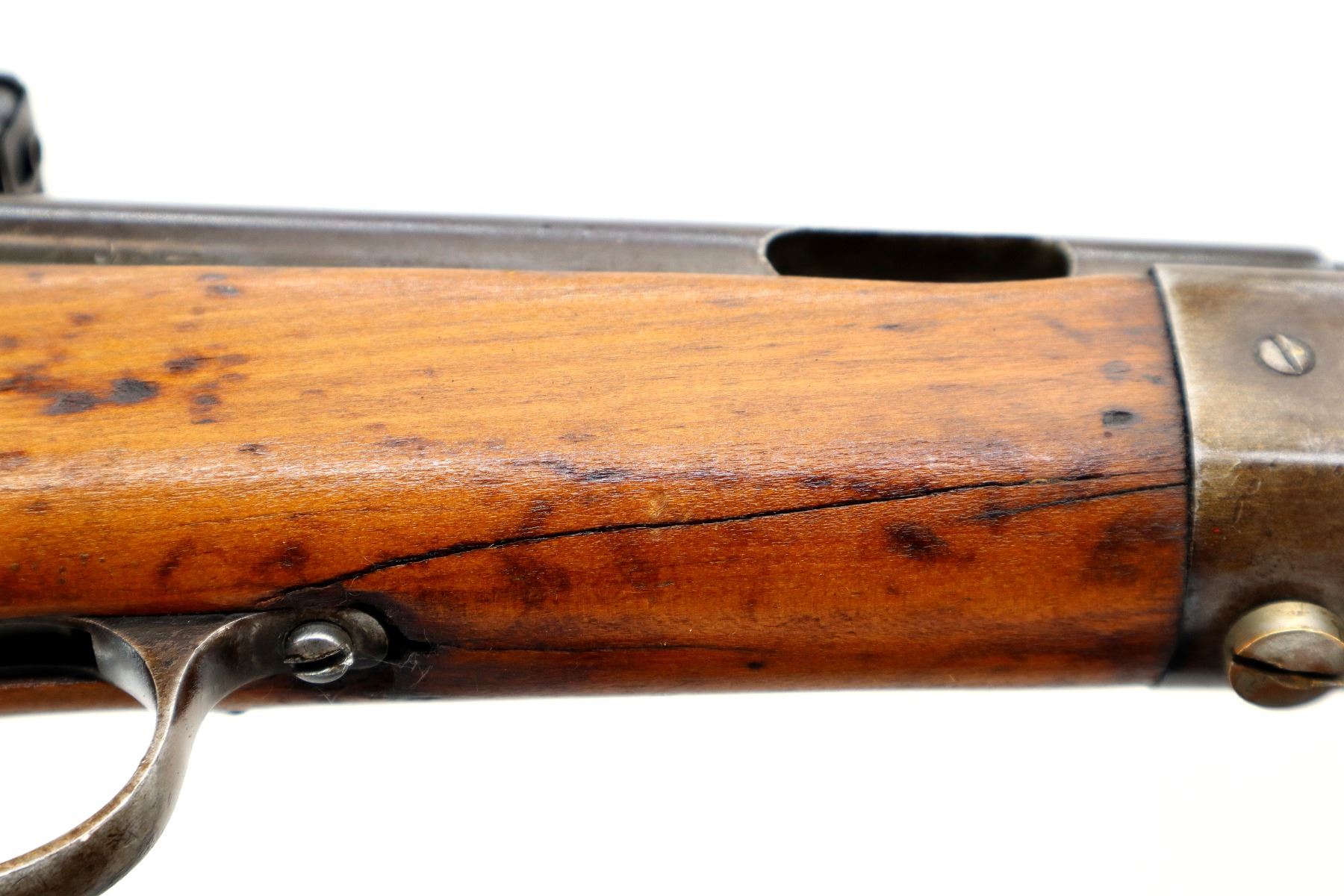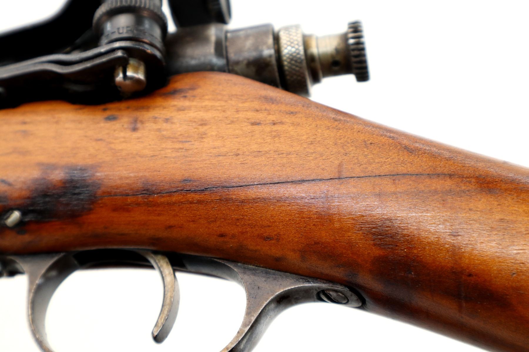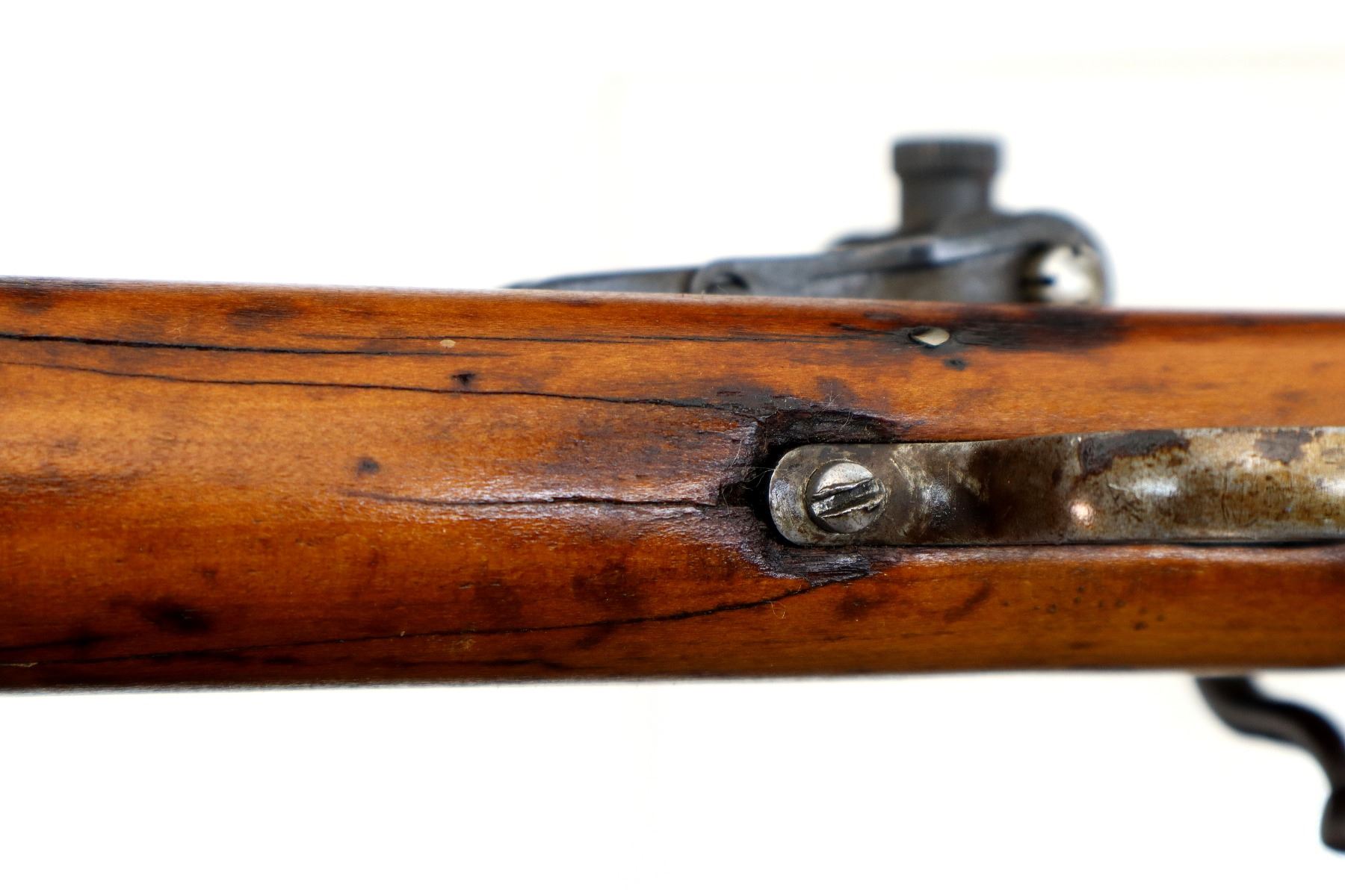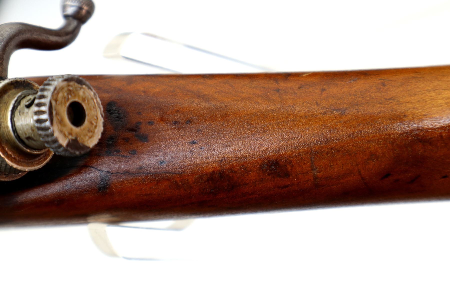 Wear: Metal finish shows some light rust speckles, scratches, handling marks and wear. Stock shows some marks, scratches and wear.