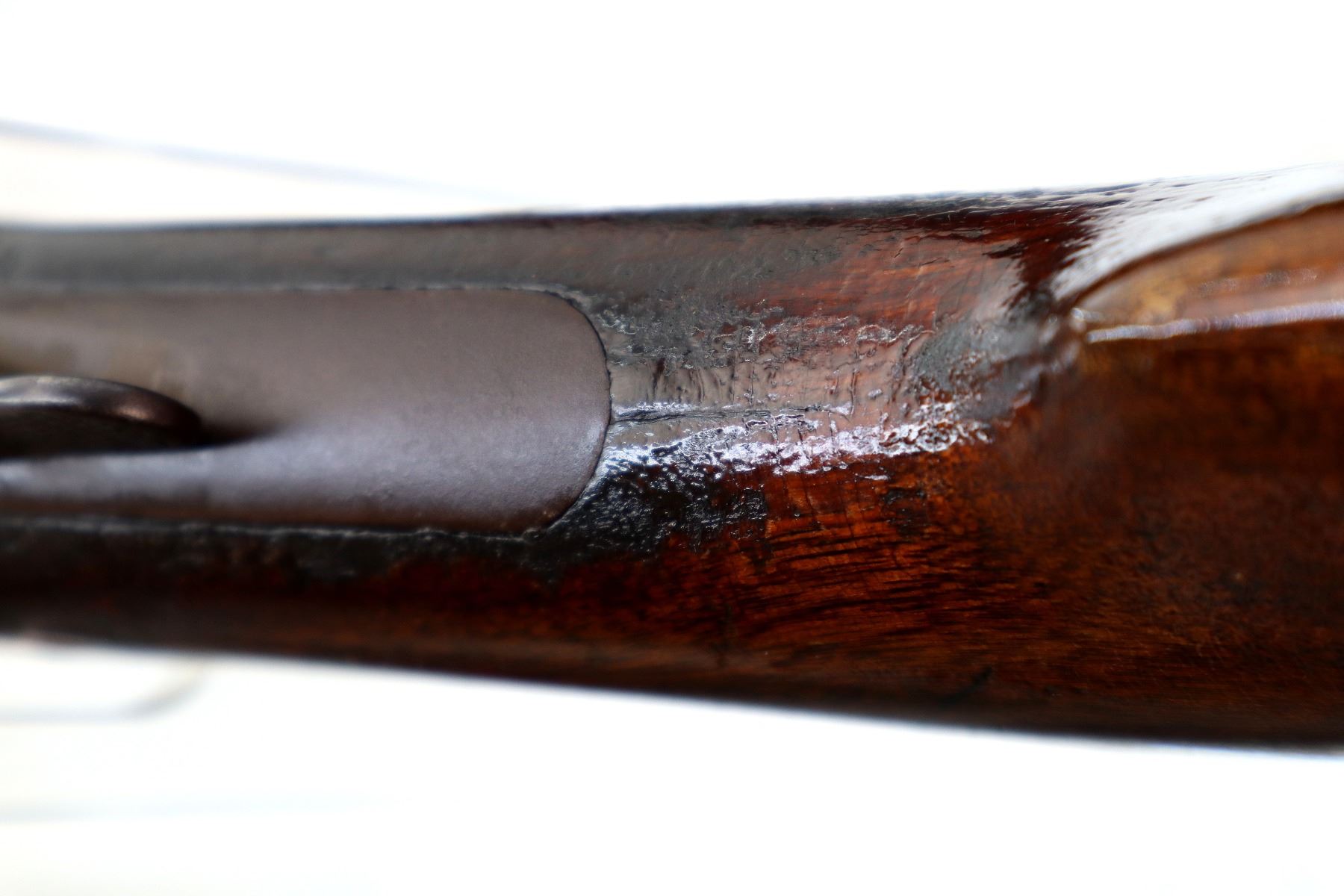 Wear: Metal finish turning brown with light pitting, rust speckles, scratches, handling marks and wear. Stocks show marks, scratches and wear.