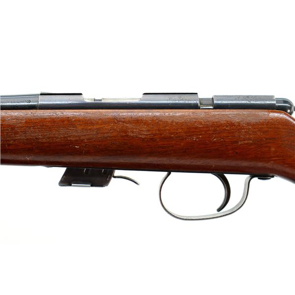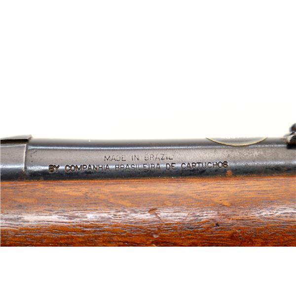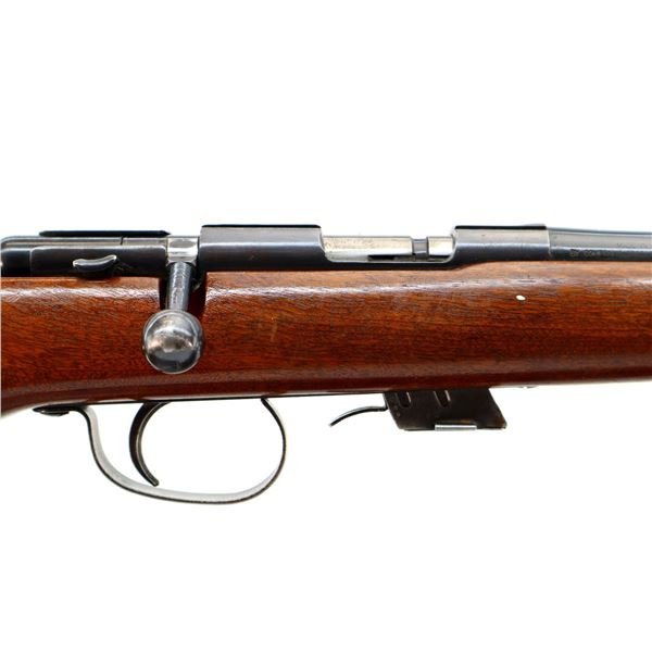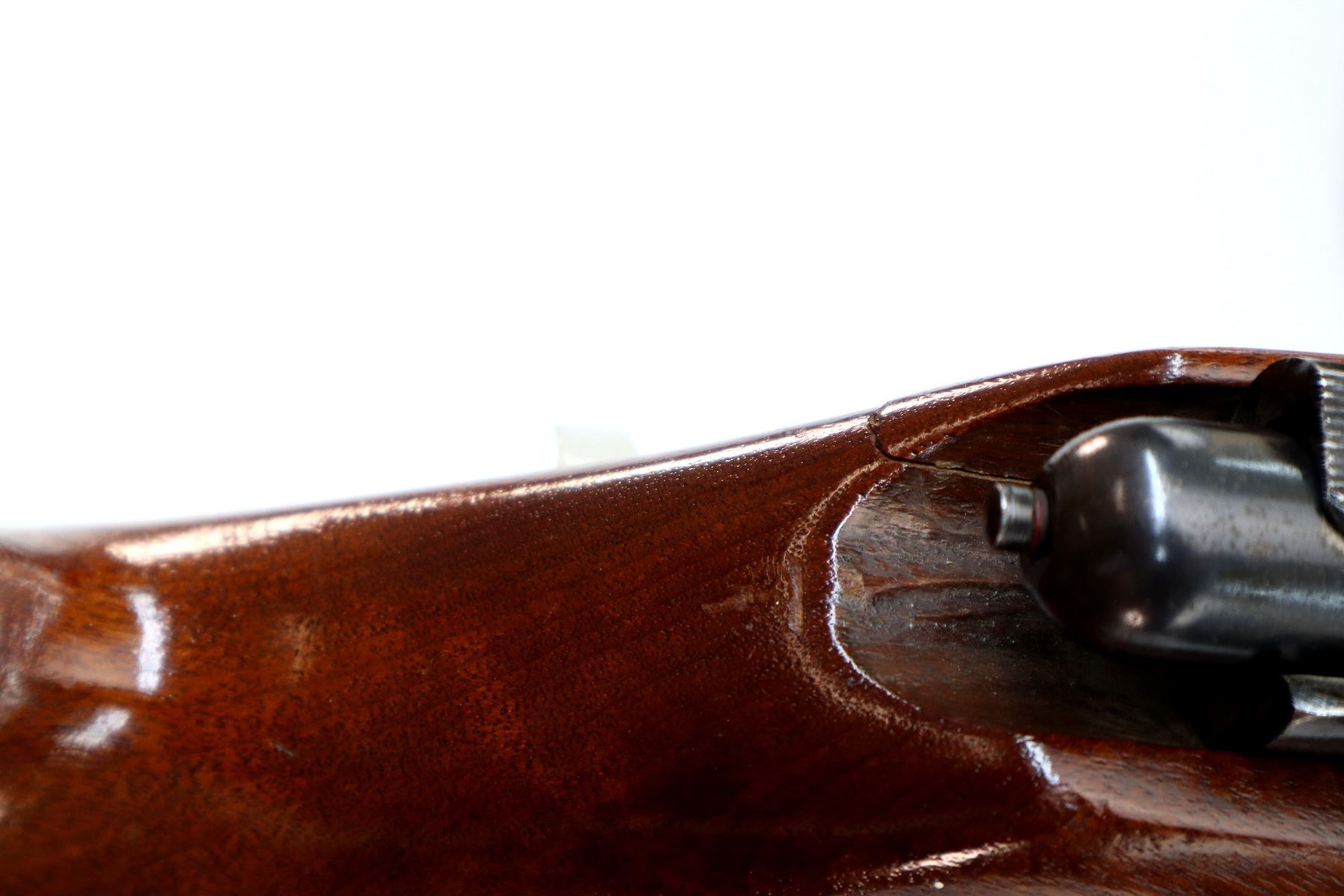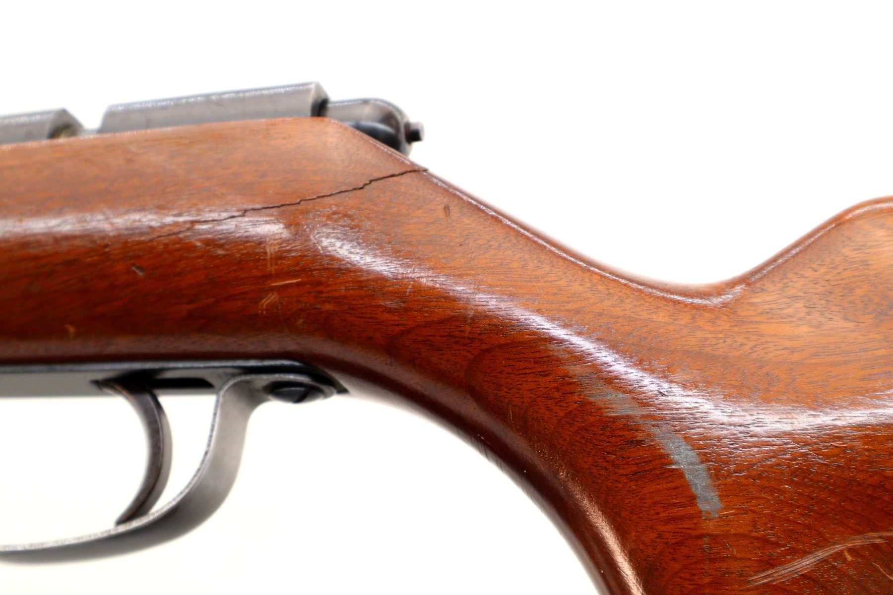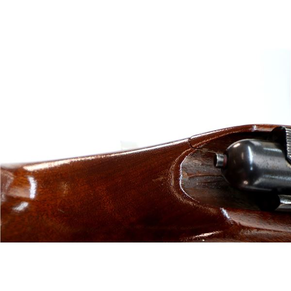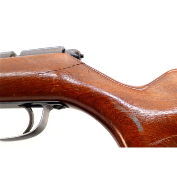 Main Description: Blade front sight, adjustable folding u notched rear sight, blued finish, grooved receiver, smooth bolt knob. One piece wood stock, pistol grip cracked behind receiver, raised comb, grooved black polymer butt plate