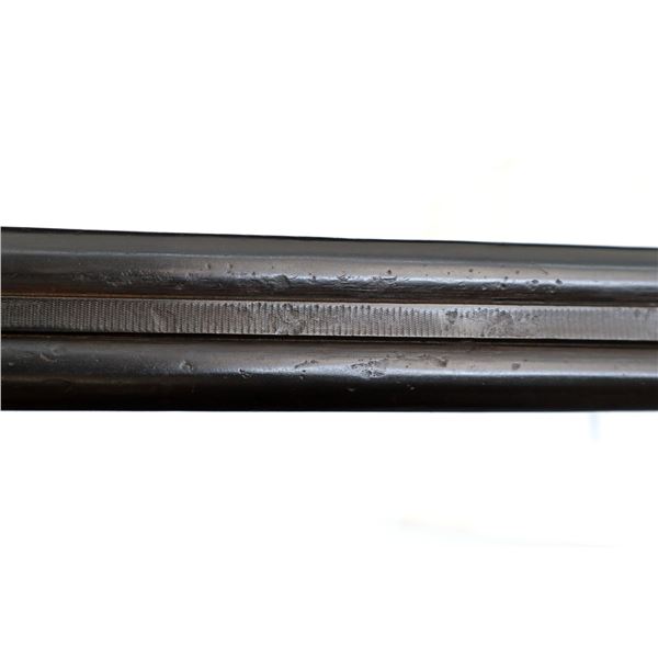 Main Description: Silver bead, metal has been refinished with pitting overall, raised rib, barrels dented, manual safety, extractor, double triggers. Two piece wood stocks, checkered forearm and pistol grip, European cheek rest, grooved black polymer butt plate, grip cap, sling swivels.
