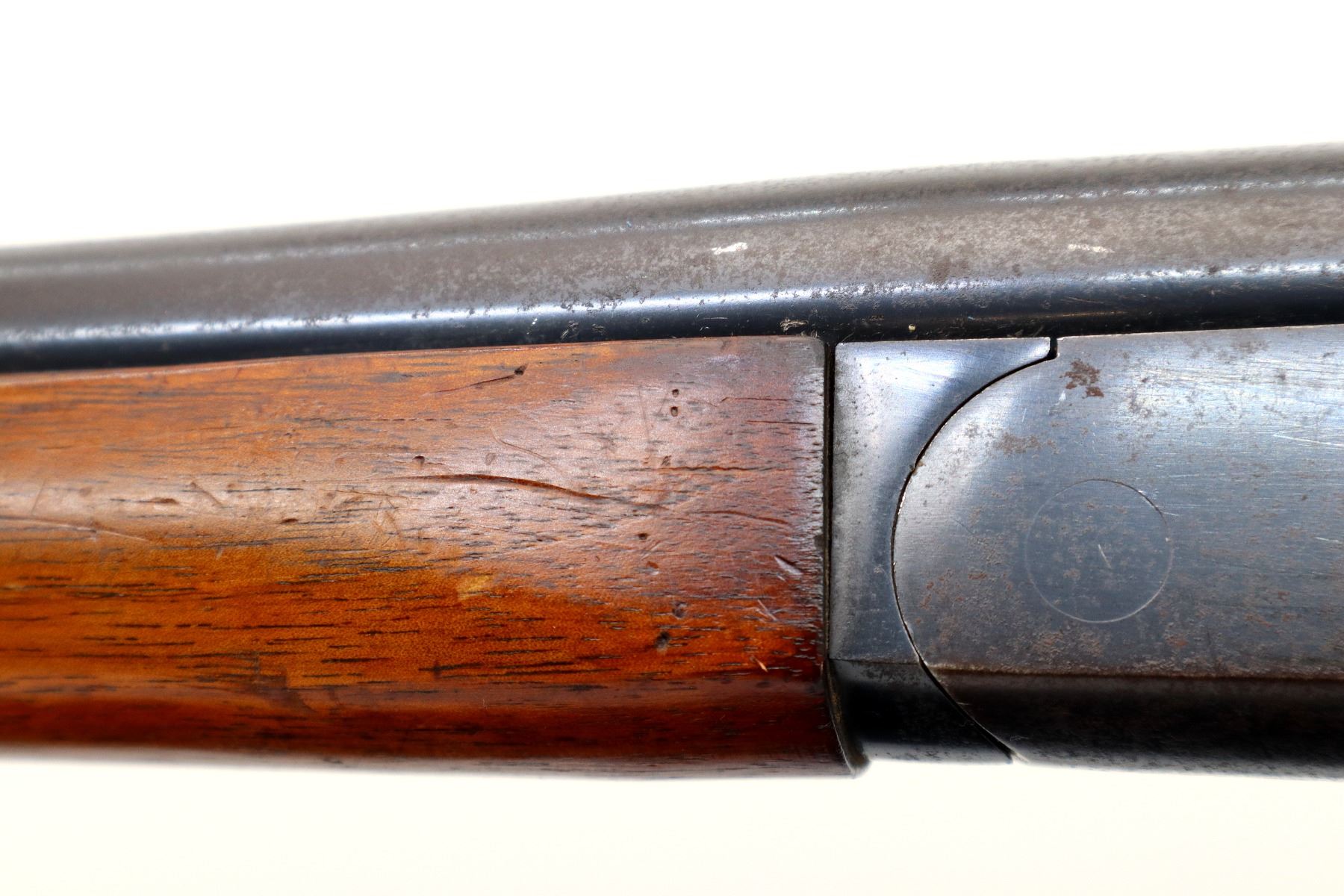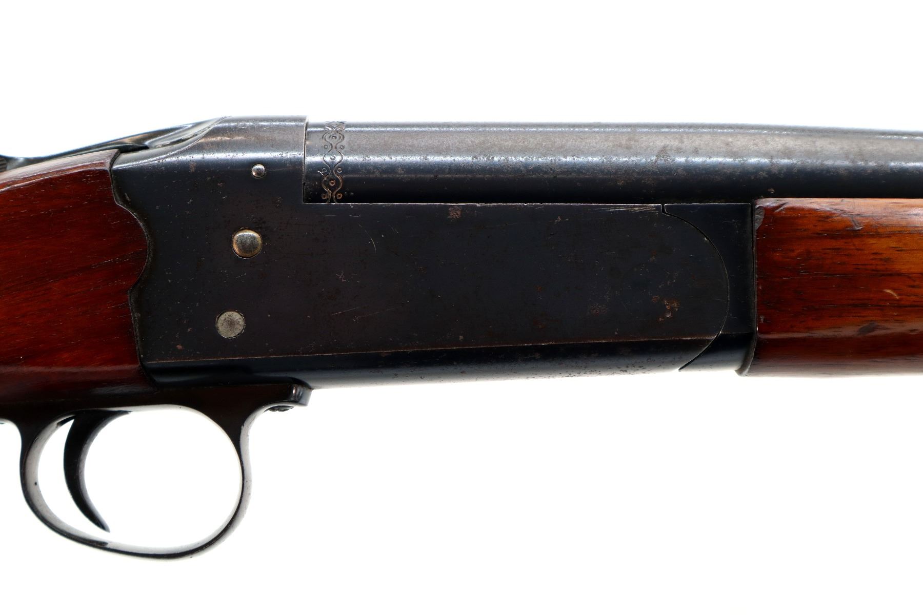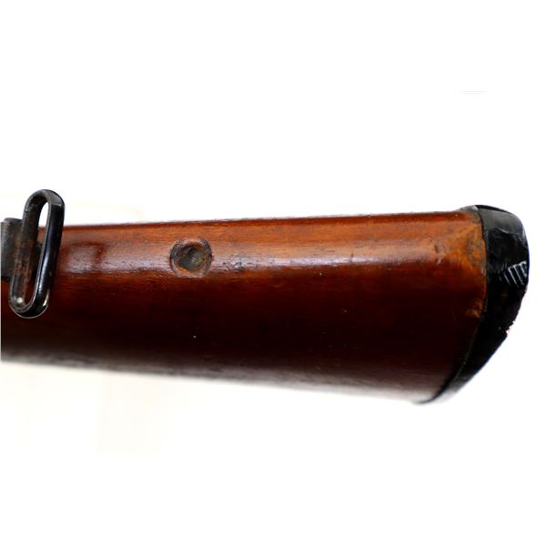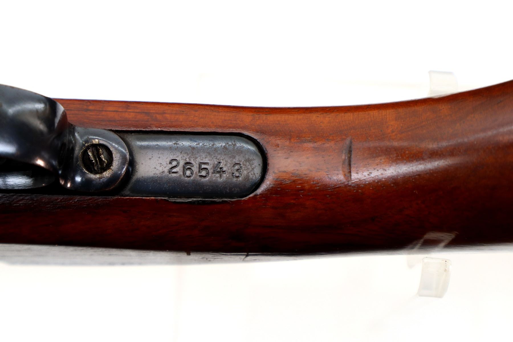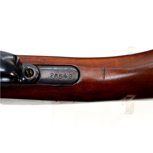 Main Description: Silver bead, blued finish, round barrel, automatic safety, ejector. Two piece wood stocks, pistol grip, grooved black polymer butt plate, 12.75" LOP, sling swivels, repaired hole in toe of stock.