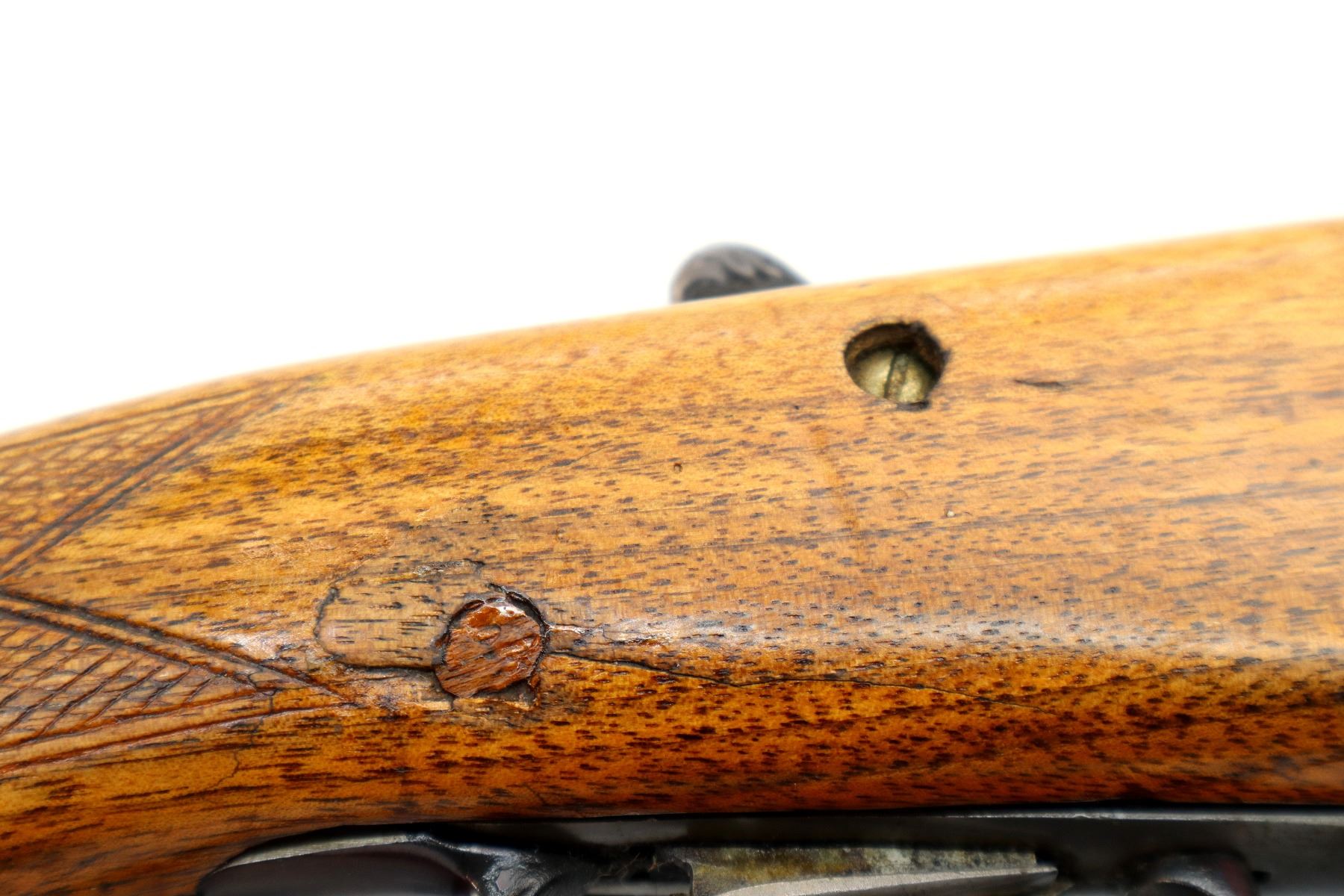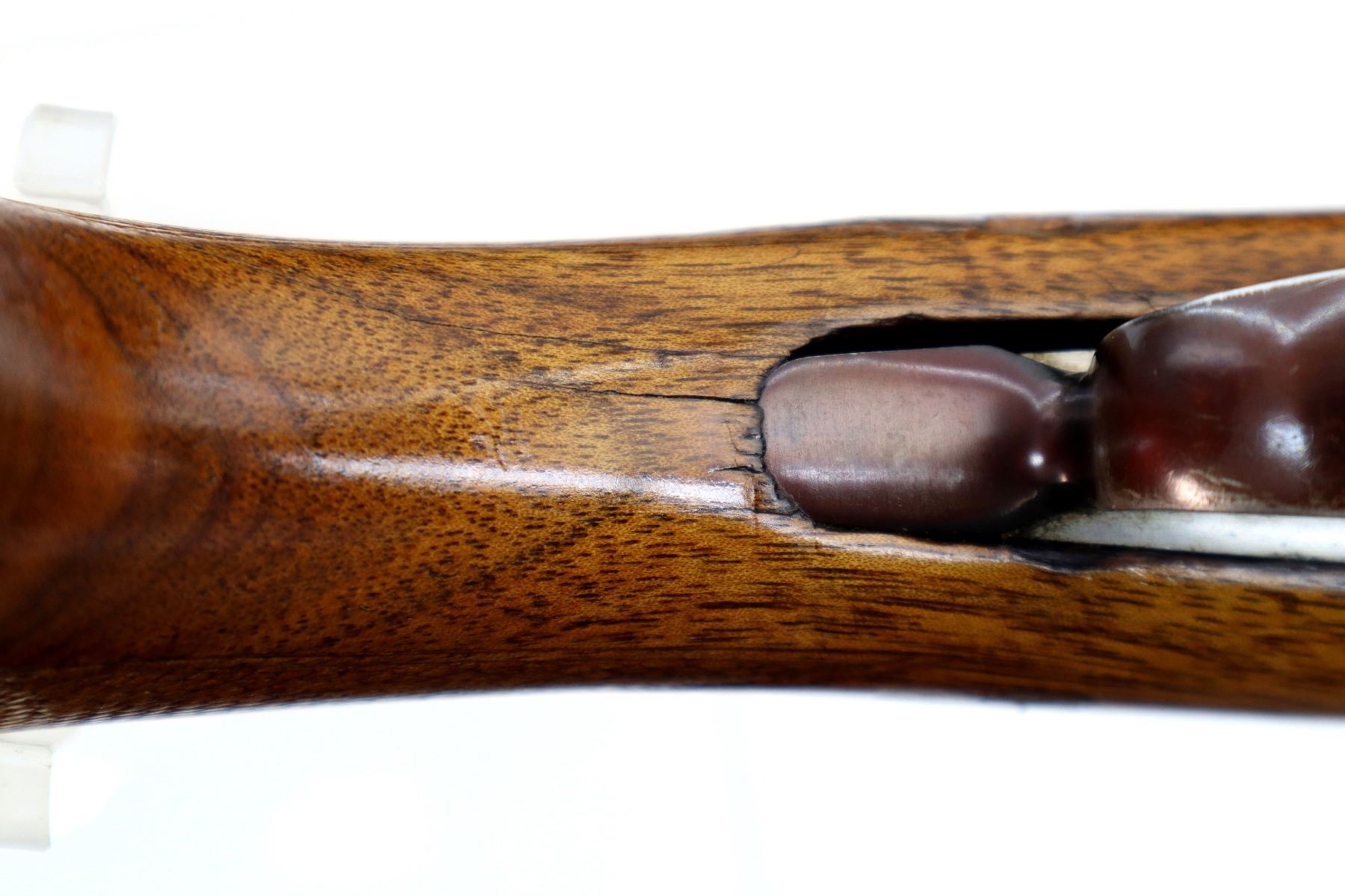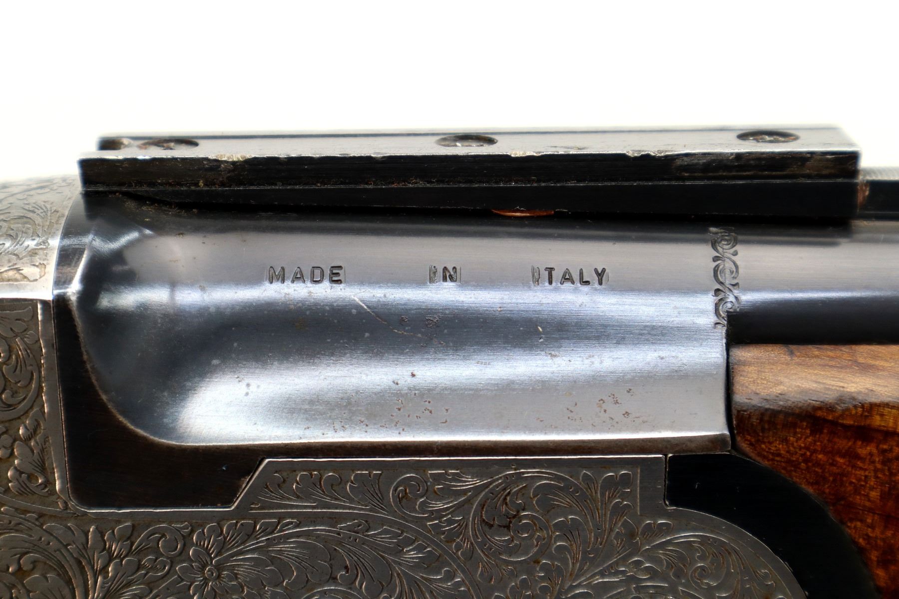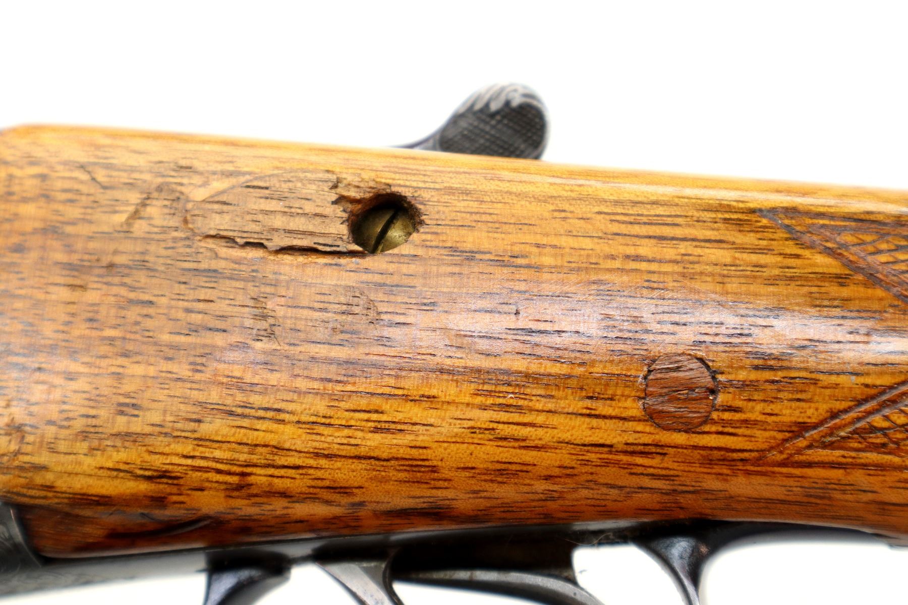 Wear: Metal finish shows some light rust speckles, scratches, handling marks and wear. Stocks show some marks, scratches and wear.