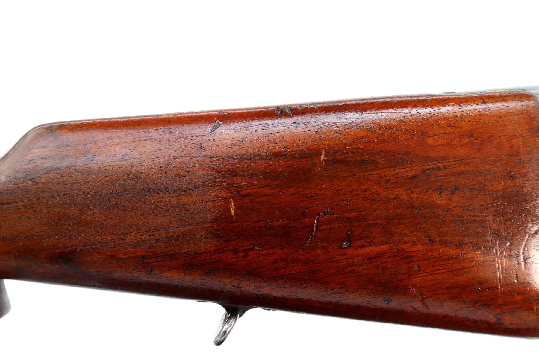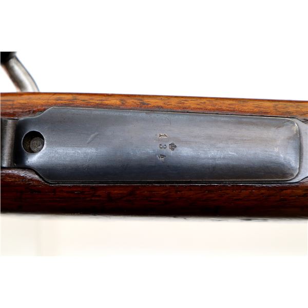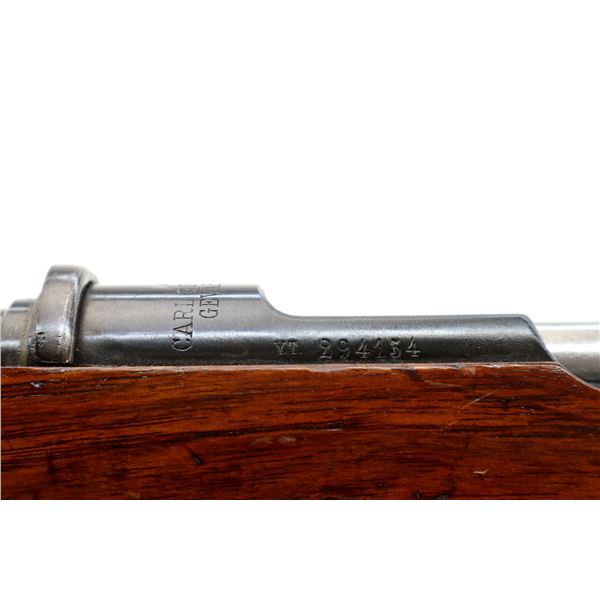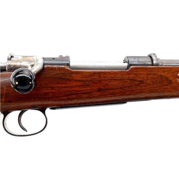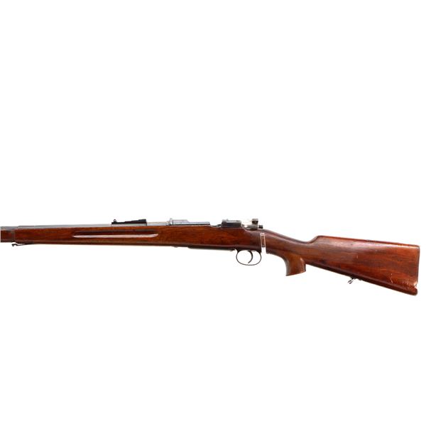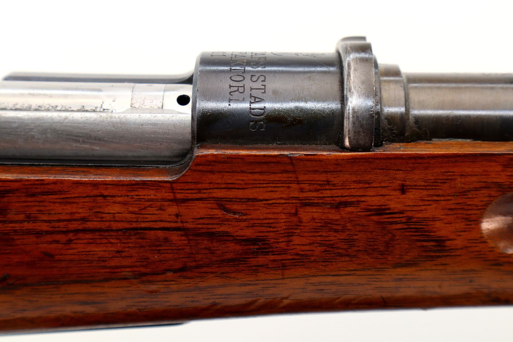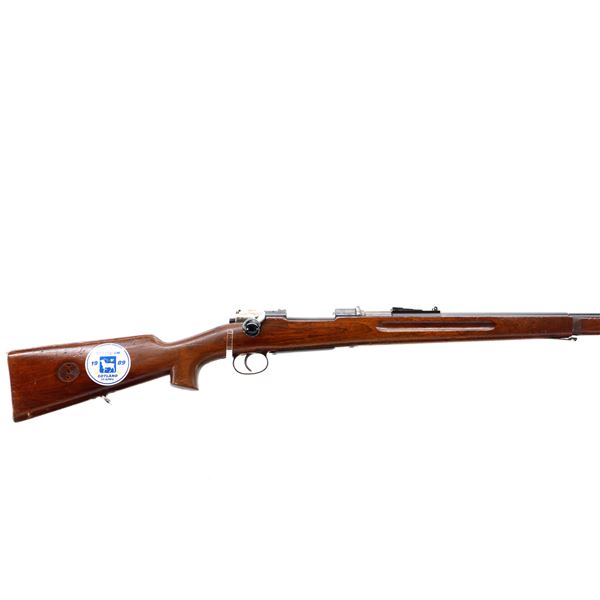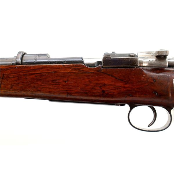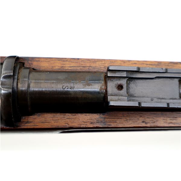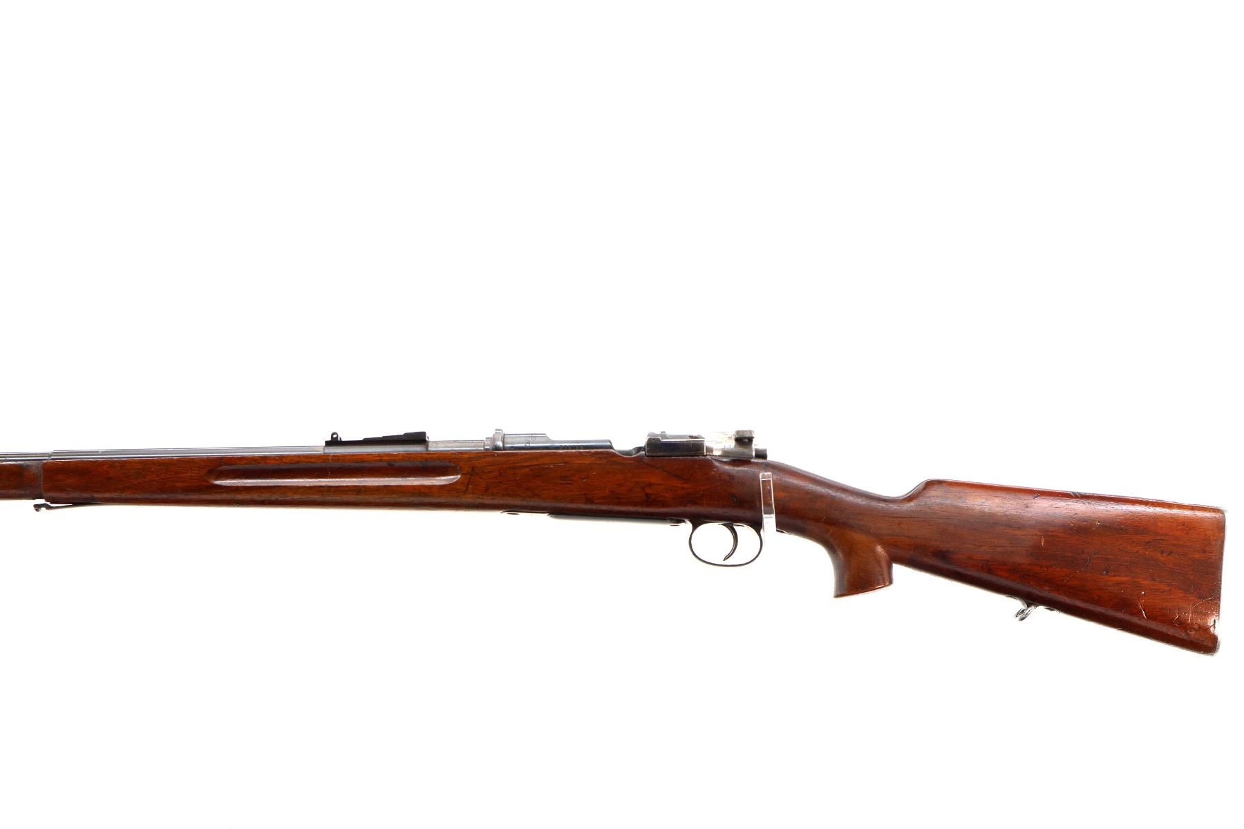 Main Description: Manufactured by Carl Gustafs 1911, serial numbers mismatched. This rifle is missing front sight, rear sight leaf and spring, rear handguard, barrel bands, stock disk and front trigger guard screw. Has front sight and rear sight ramps, blued finish, receiver bridge drilled and tapped with no plug screws, silver bolt with modified handle and black polymer knob, action does not fire requires parts or repair. One piece full military wood stock, finger grooved forearm, modified pistol grip, smooth steel butt plate, sticker on right side of stock, rear sling swivel only.