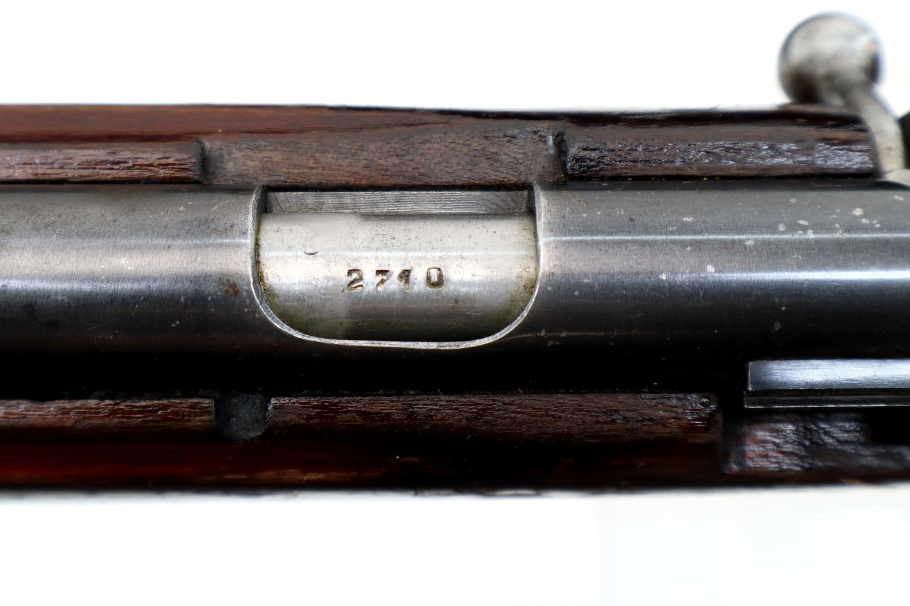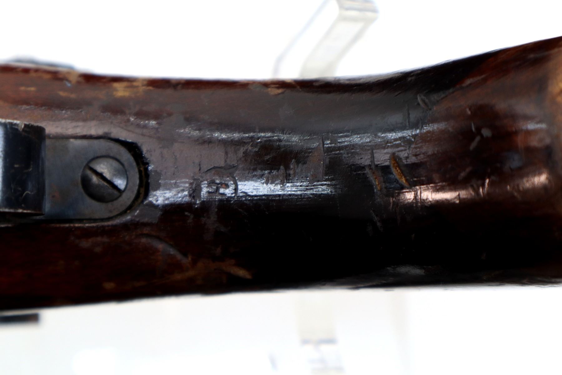 Wear: Metal finish shows some light pitted spots, rust speckles, scratches, handling marks and wear. Stock shows some marks, scratches and wear.
