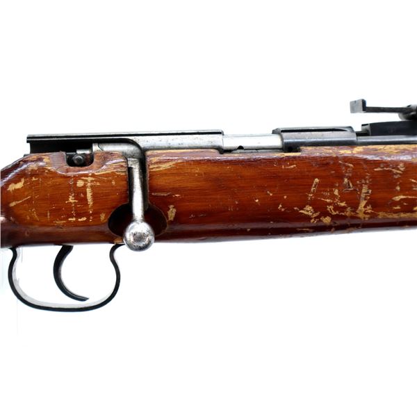 Main Description: Post front sight with hood and ramp, adjustable u notched rear sight, heavy barrel, grooved receiver, smooth bolt knob. One piece wood stock, checkered pistol grip, grooved brown polymer butt plate, sling swivels.