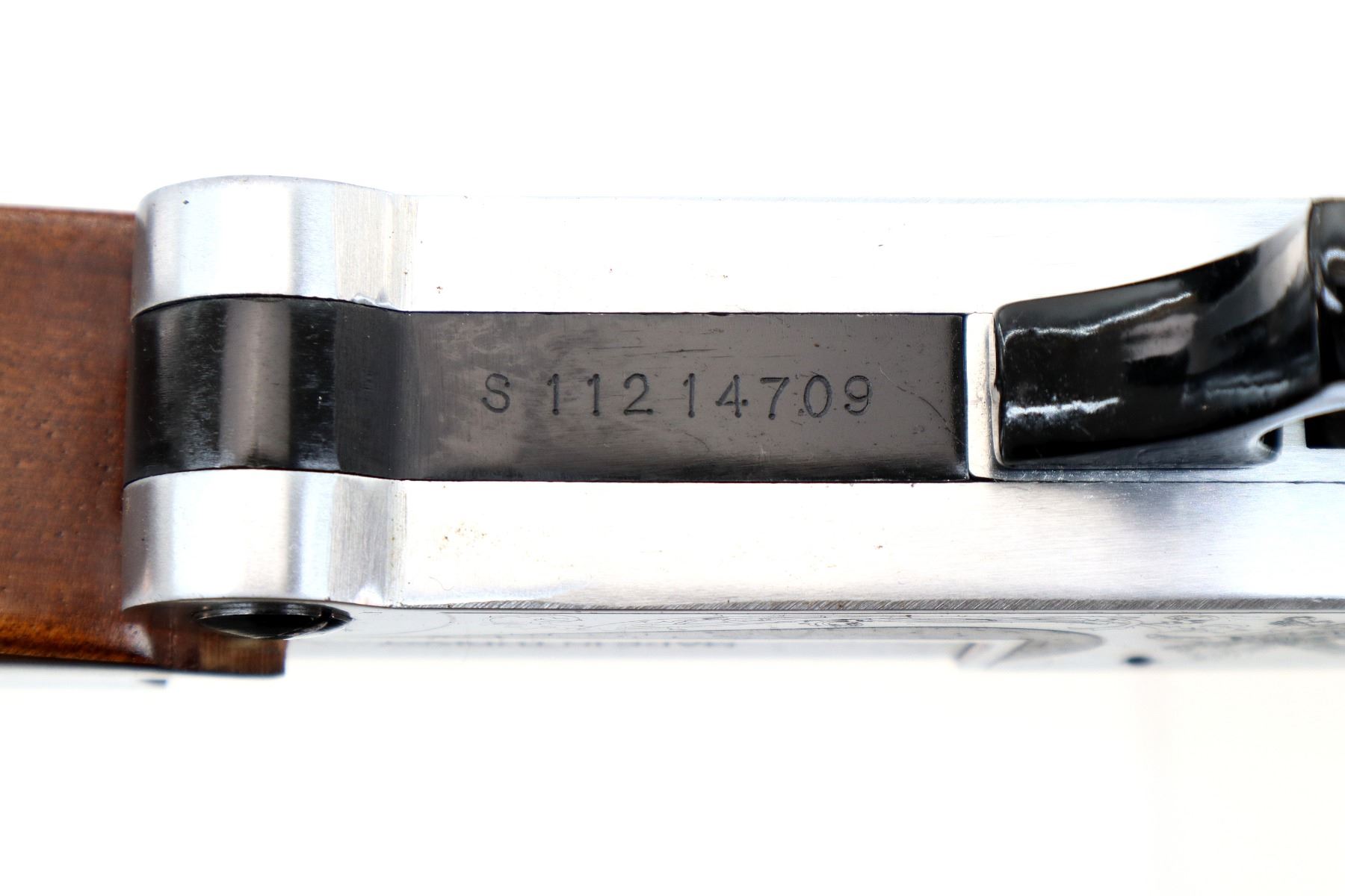 Wear: Metal finish shows a few light rust speckles, scratches, handling marks and wear. Stocks show some marks, scratches and wear.