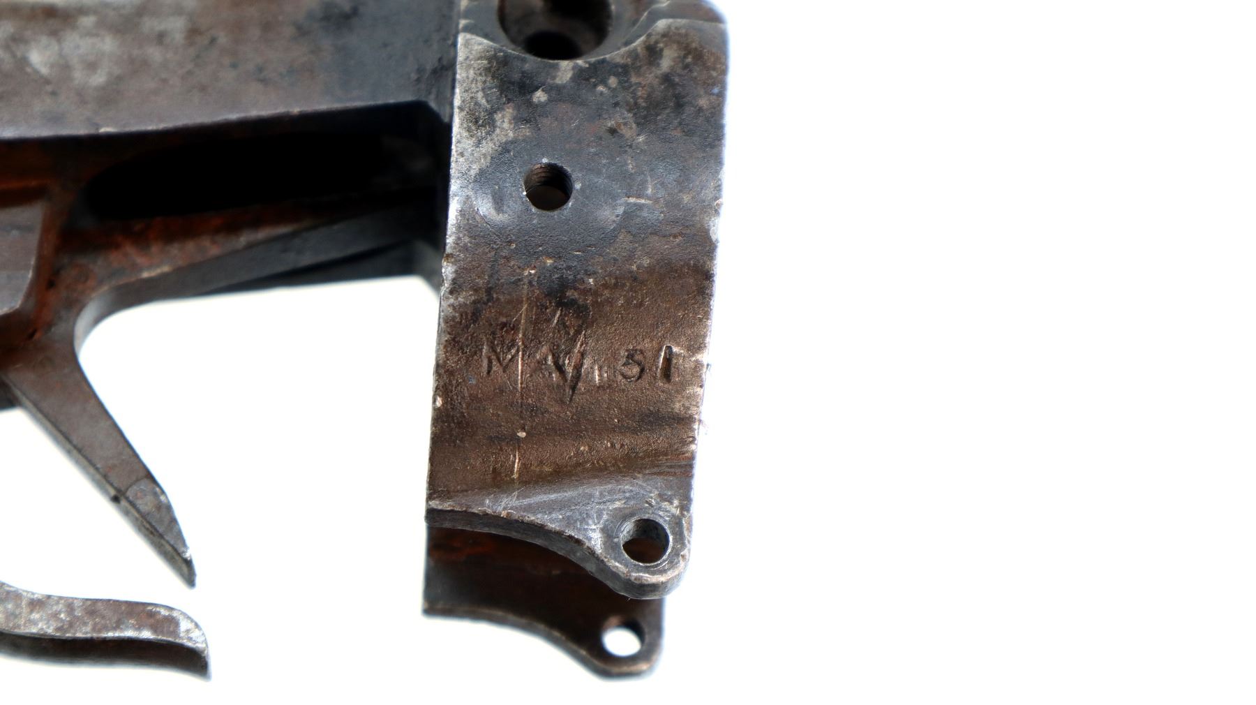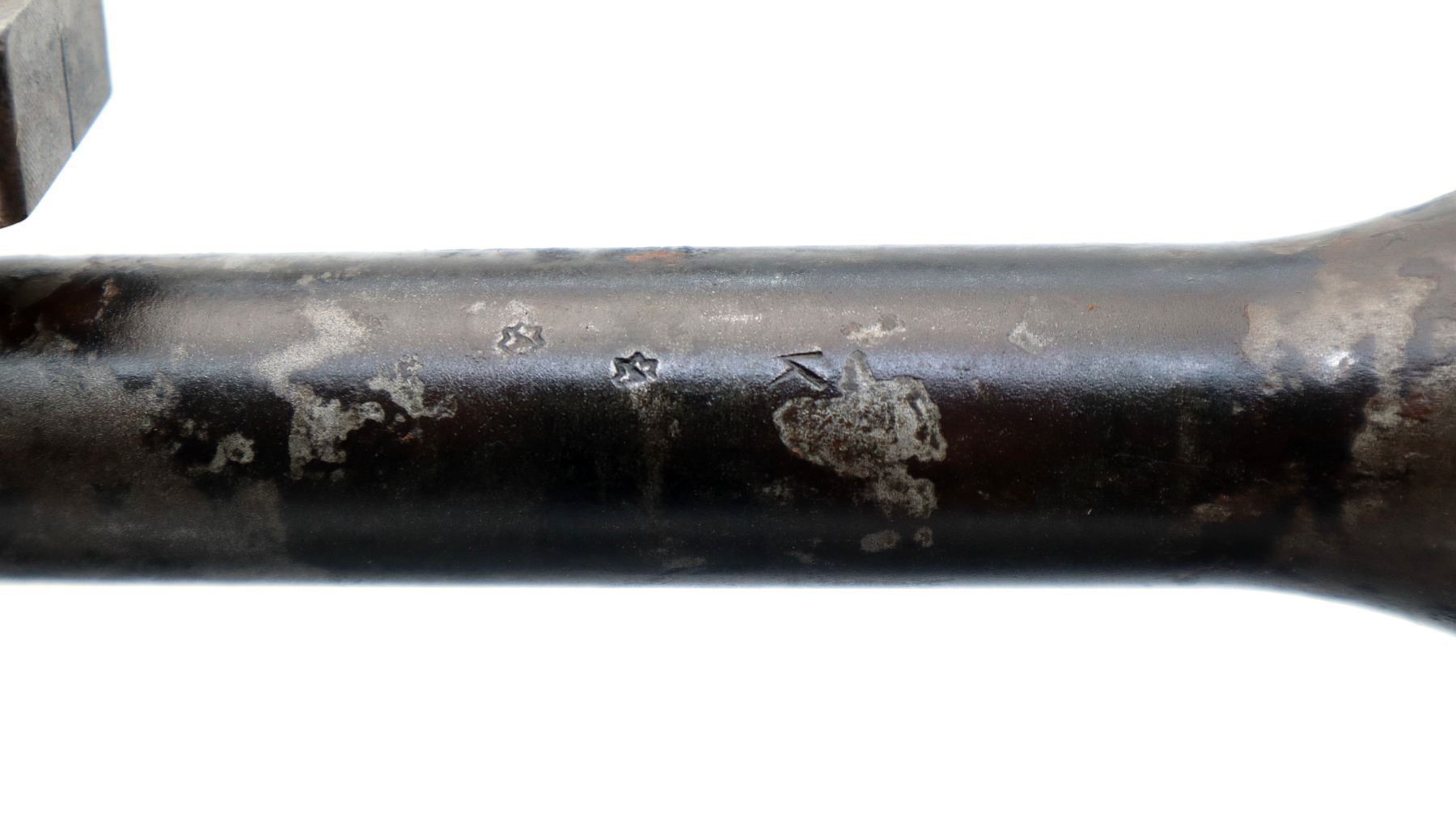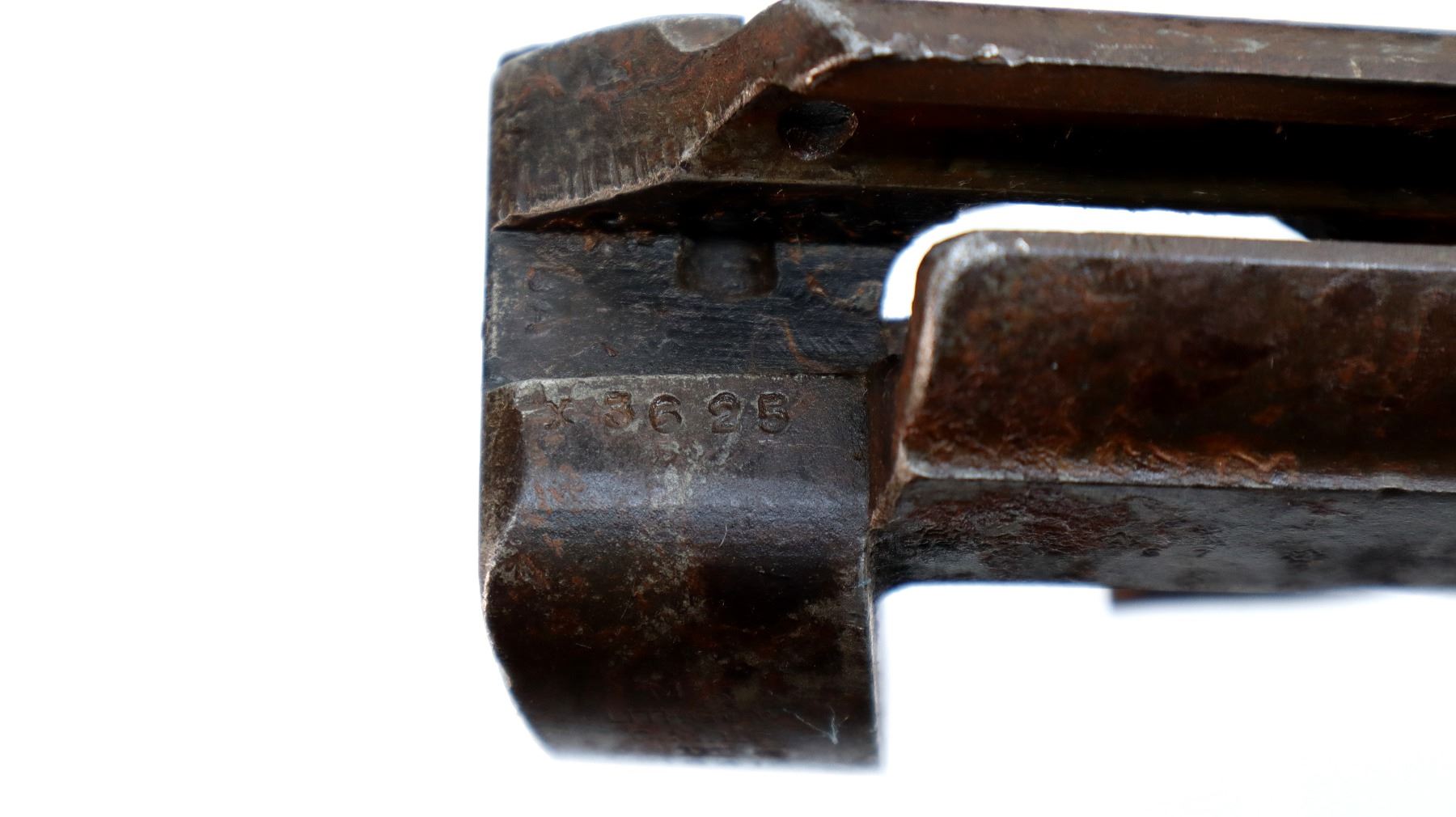 Wear: Metal finish shows pitting, light rust, scratches, handling marks and wear.