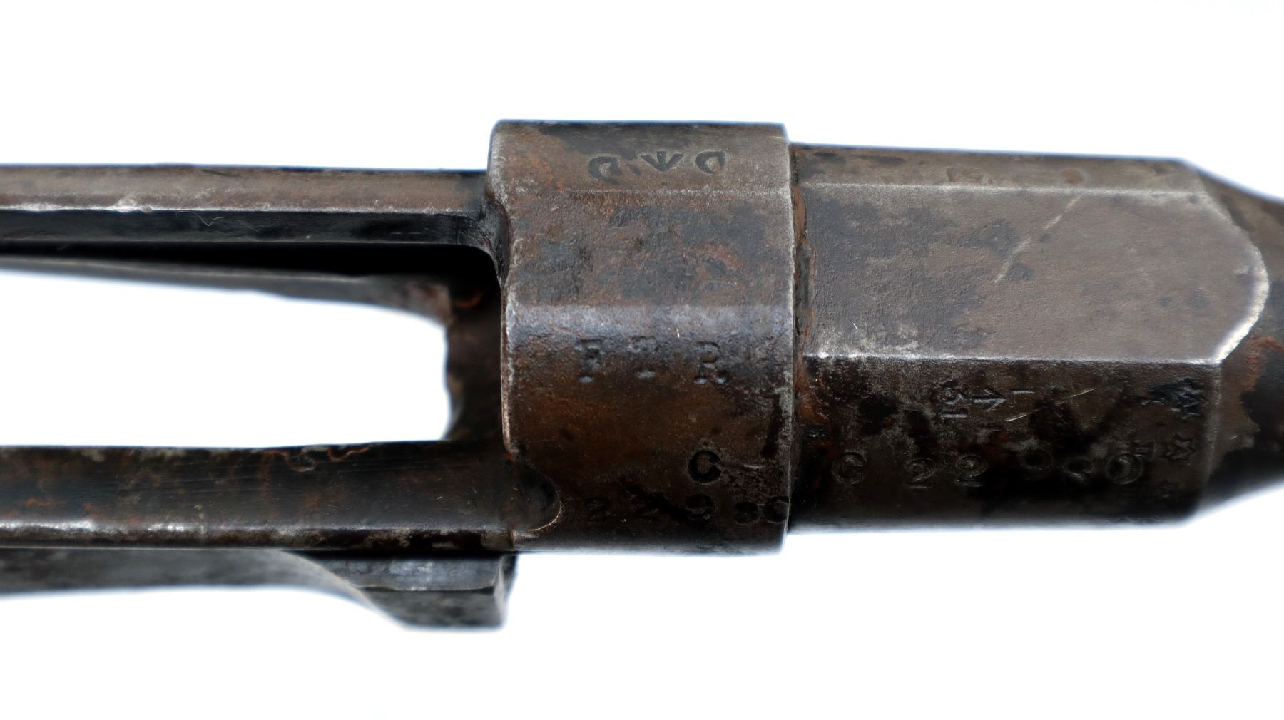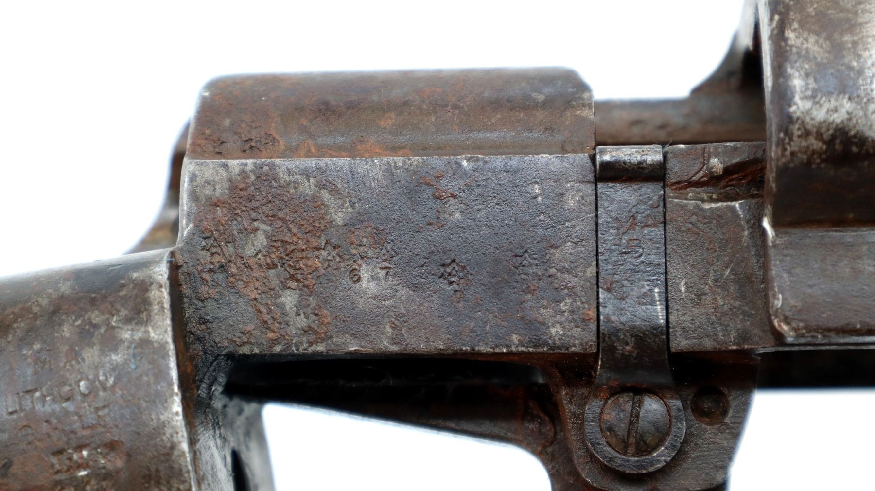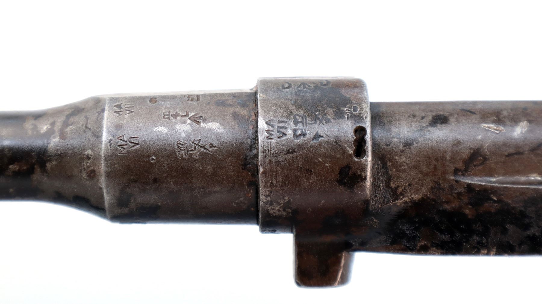 Wear: Metal finish shows pitting, light rust, scratches, handling marks and wear.