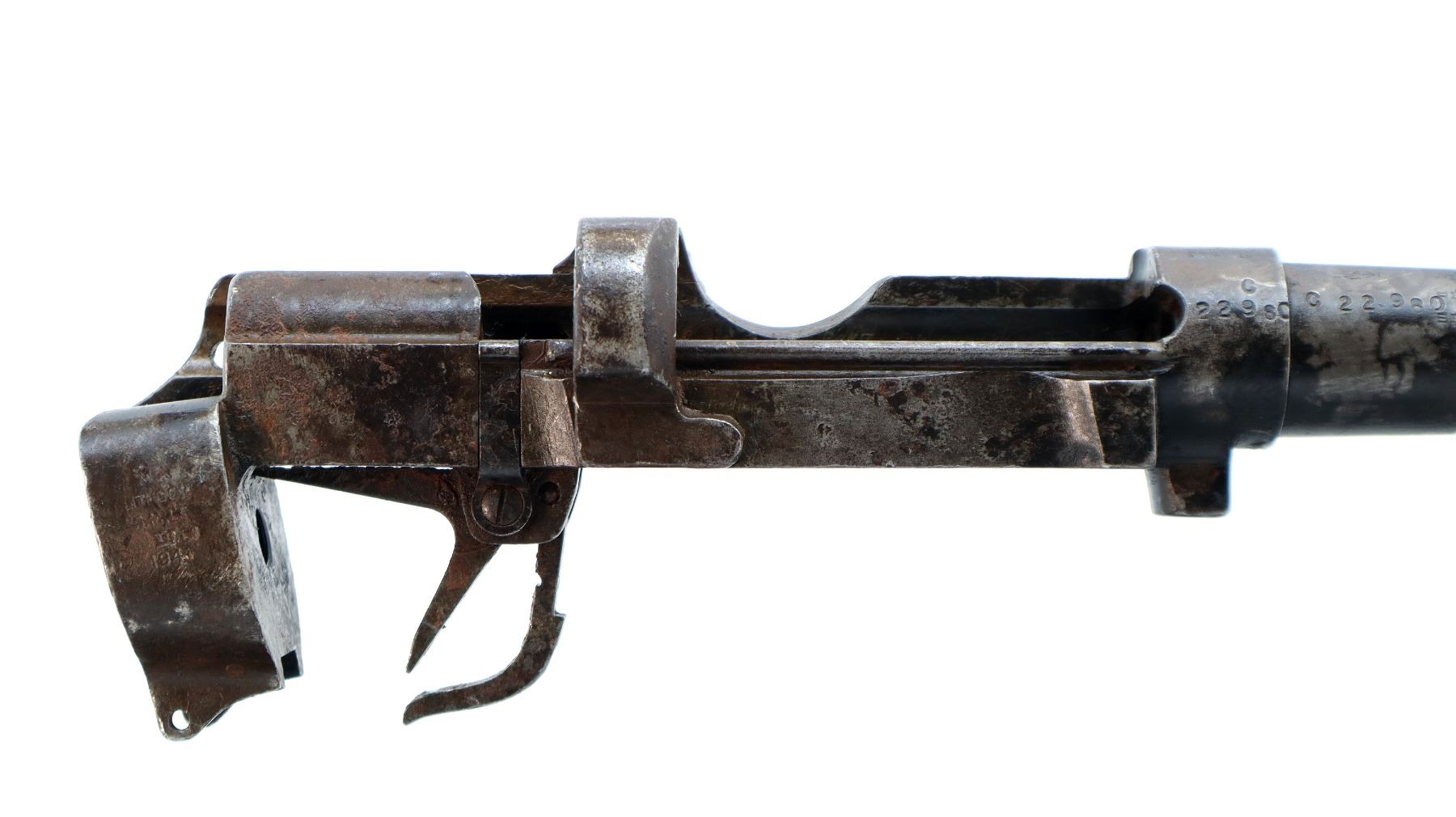 Main Description: Does not function mechanically as designed, Manufactured by Lithgow 1941. Blade front sight with ramp, adjustable u notched rear sight. Includes bolt catch spring, sear and magcatch. No other parts or stocks are included.