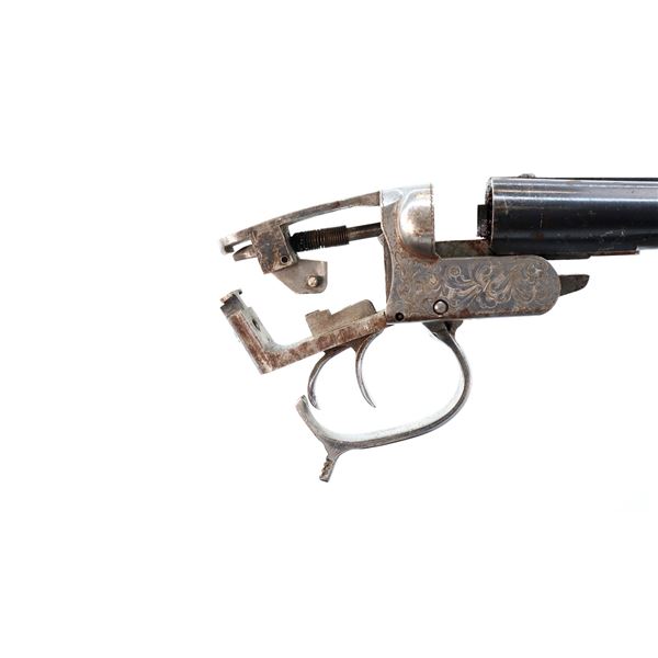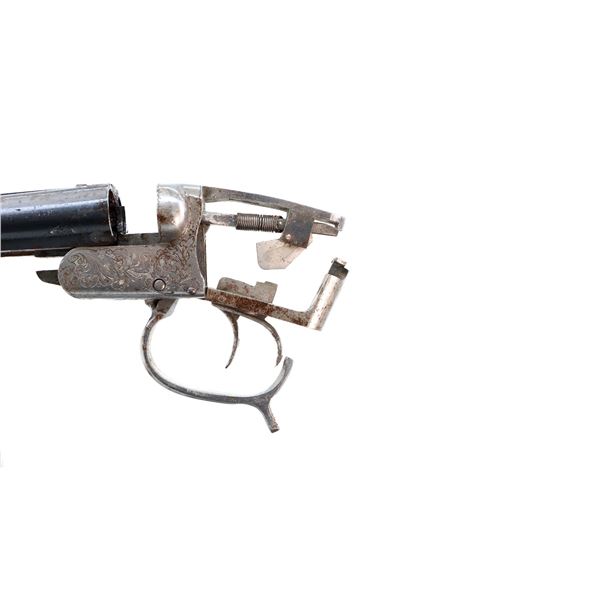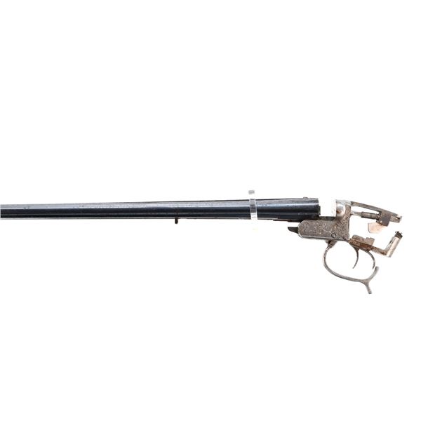 Main Description: Missing bead, blued barrels with raised rib, silver engraved receiver, includes trigger guard and triggers, extractor, plunger and spring. No other parts or Stocks are included.