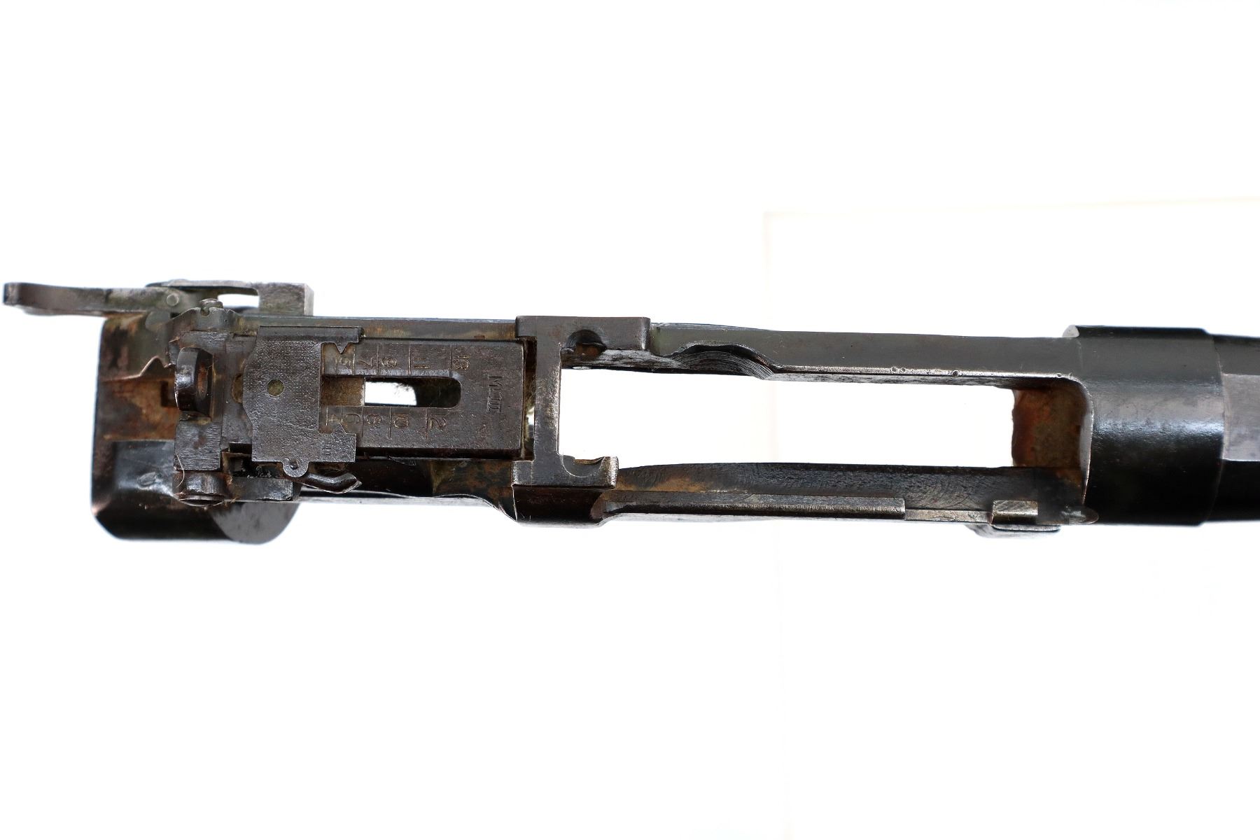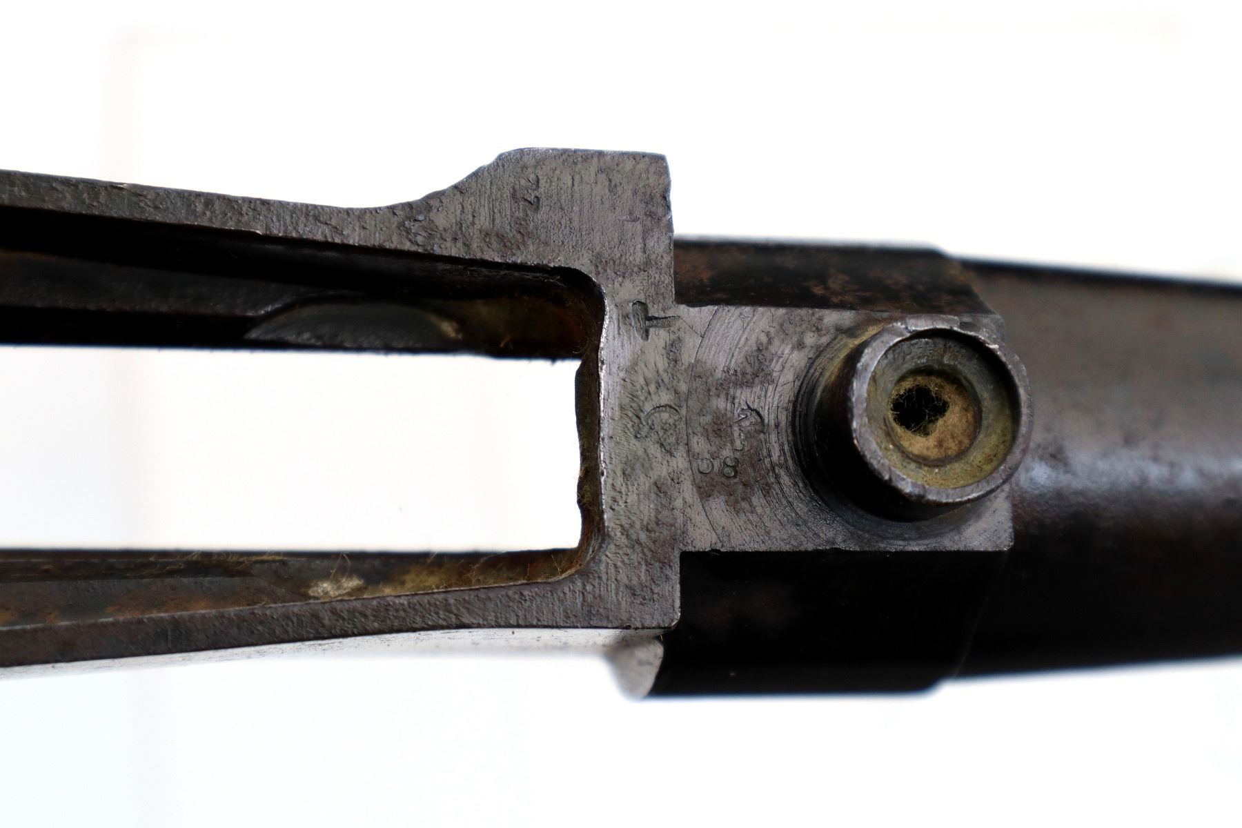 Wear: Metal finish shows some pitting, rust, scratches, handling marks and wear.