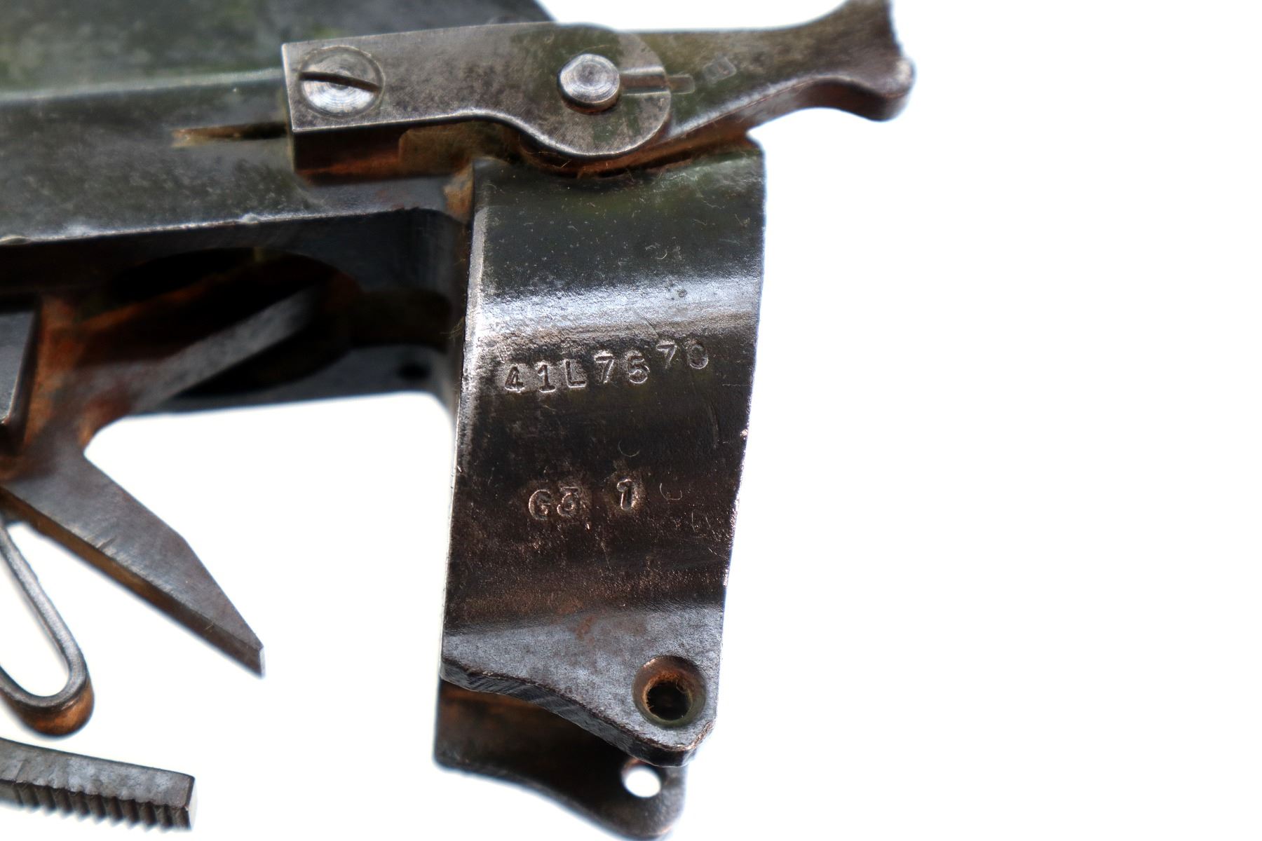 Main Description: Does not function mechanically as designed, Manufactured by Long Branch 1943. Includes front sight base, stamped MK3 rear peep sight, ejector screw, safety assembly, sear, magcatch and spring. No other parts or stocks are included.