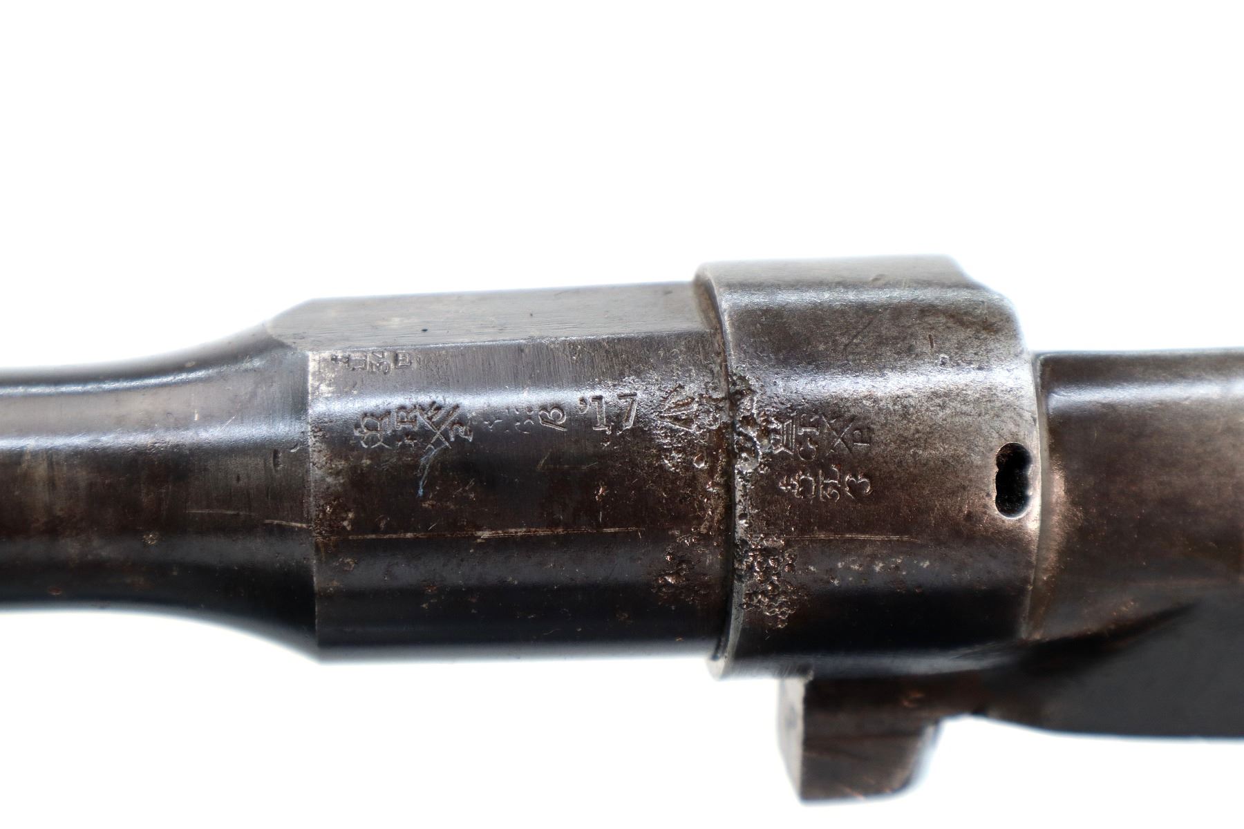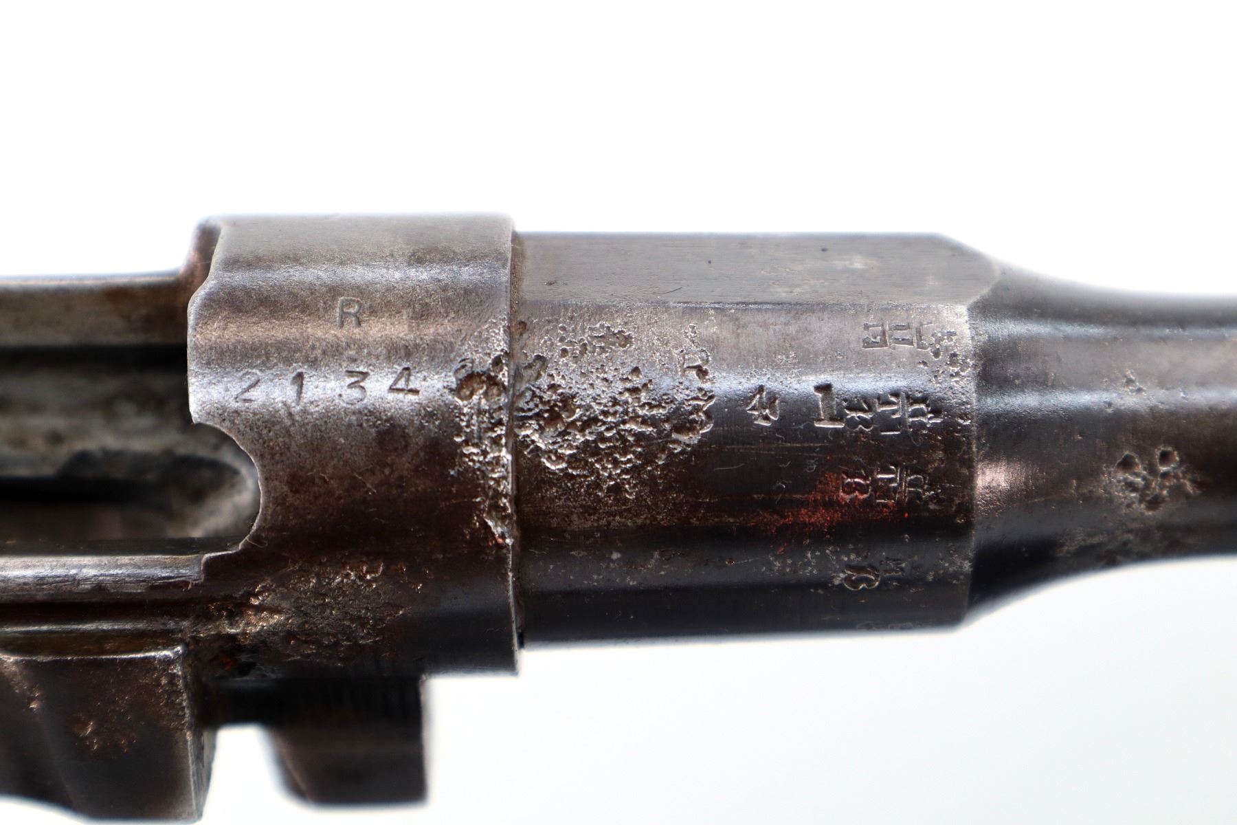 Wear: Metal finish shows pitting, rust, handling marks and wear.