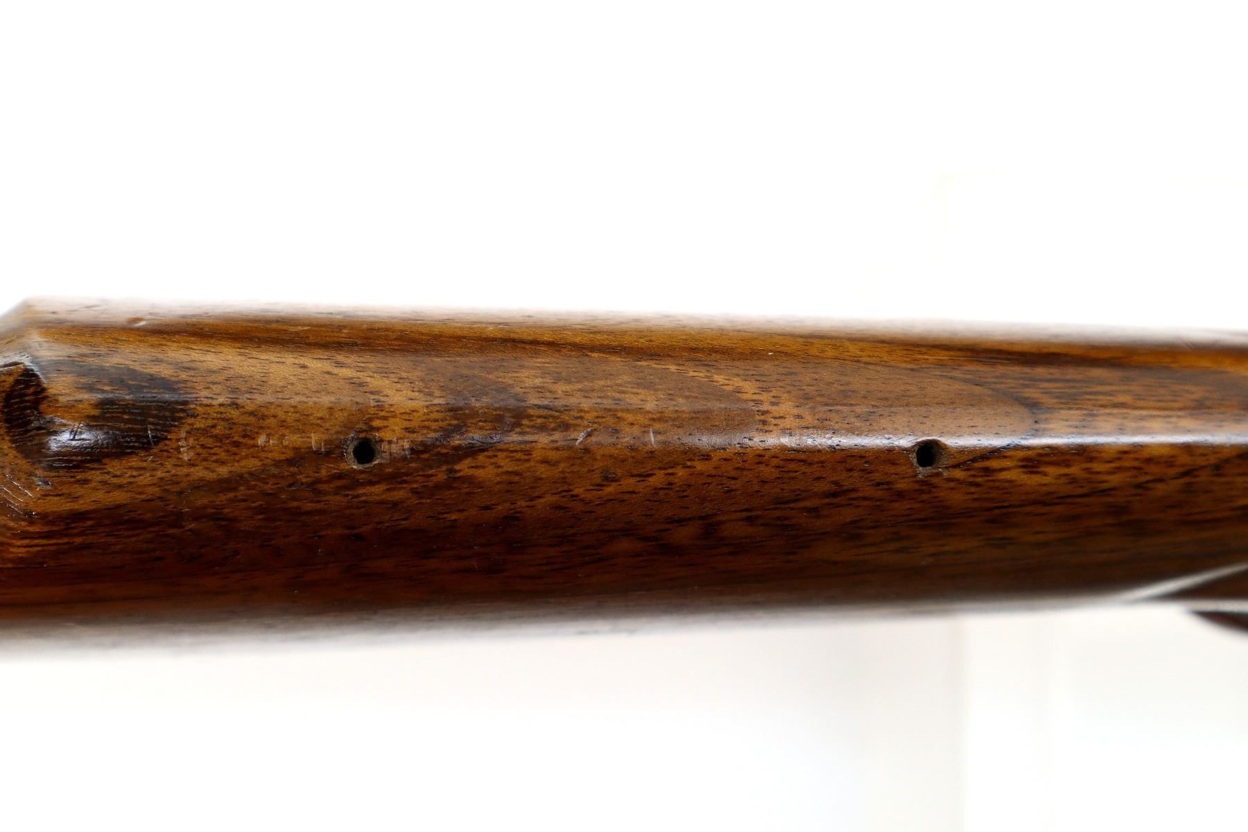 Main Description: Includes: Barrel and receiver with blued finish. One piece wood stock, checkered forearm with hole on left side, checkered pistol grip, cheek rest, black vented rubber recoil pad which requires fitting, sling swivels. Does not include bolt, trigger parts, trigger guard assembly, action screws and possibly other small parts.