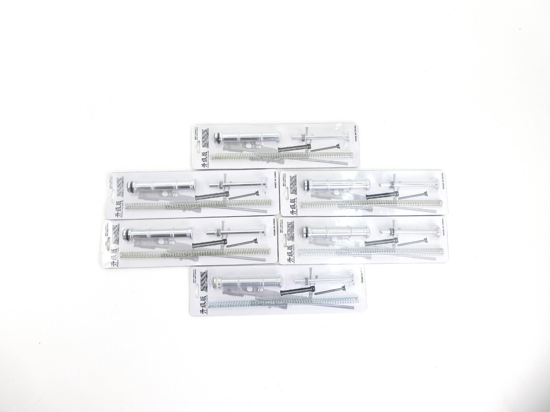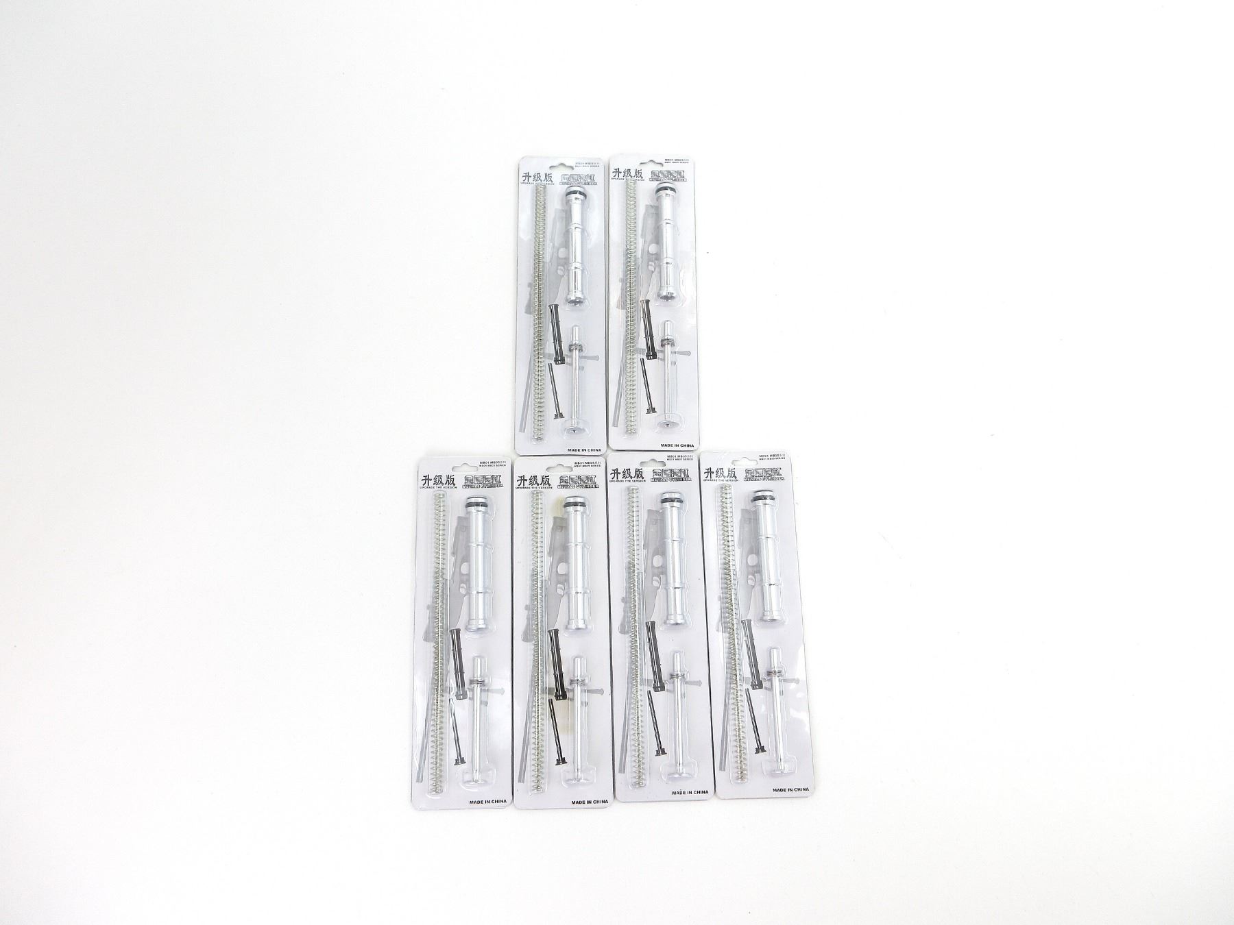 LOT INCLUDES; (6) UPGRADE KITS, STAINLESS STEEL CONSTRUCTION, POWER UP KIT FOR AIRSOFT SNIPER RIFLES, INCLUDES UPGRADE SPRING, UPGRADE PISTON & UPGRADE BALL BEARING SPRING GUIDE, SUITABLE FOR MARUZEN TYPE96, APS2, WELL MB-01, MB-04, MB-05, ECHO1 ASR, JAVELIN M24, ETC., EASY INSTALLATION, NOS, UNOPENED. SEE PHOTOS.