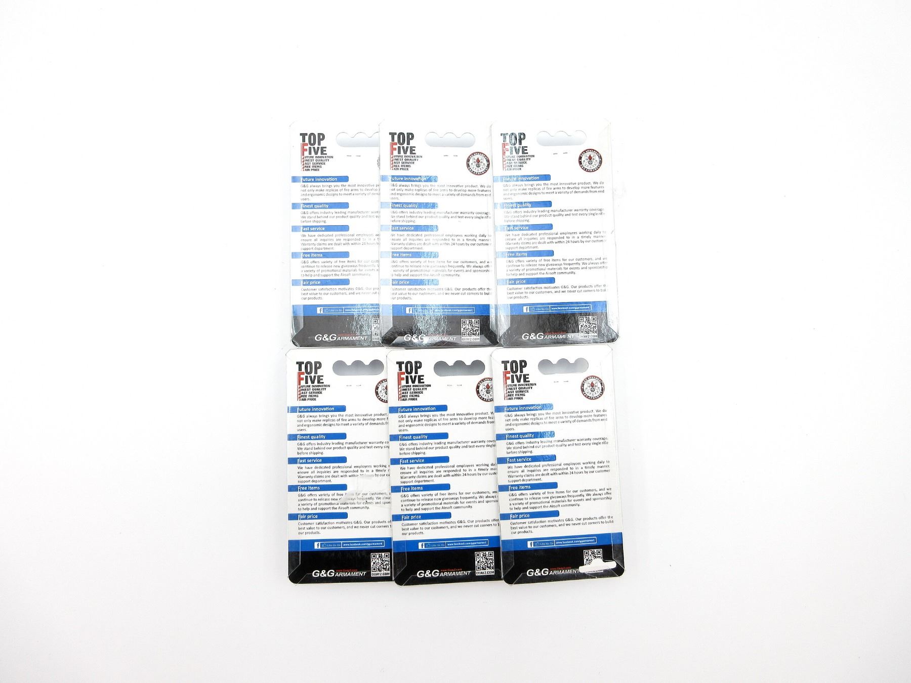LOT INCLUDES; (6) ALLOY CONSTRUCTION, REPLACES ORIGINAL PARTS, SUITABLE FOR G&G ERB AEG, PART NO. G-10-089-1, NOS, UNOPENED. SEE PHOTOS.