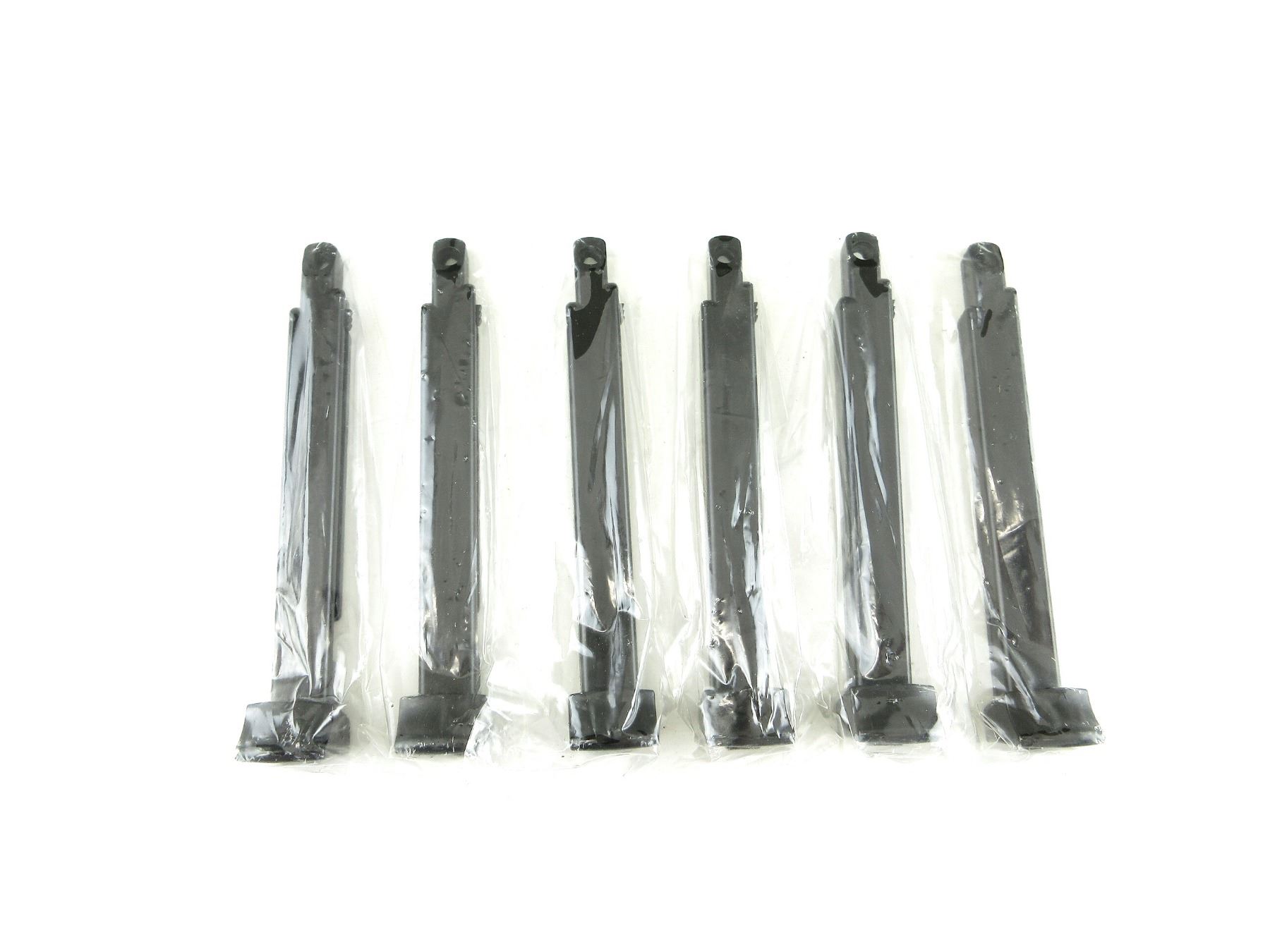 LOT INCLUDES; (6) 6MM AIRSOFT BB, 14 ROUND MAGS, STEEL CONSTRUCTION, UNMARKED, NOS, UNOPENED. SEE PHOTOS.