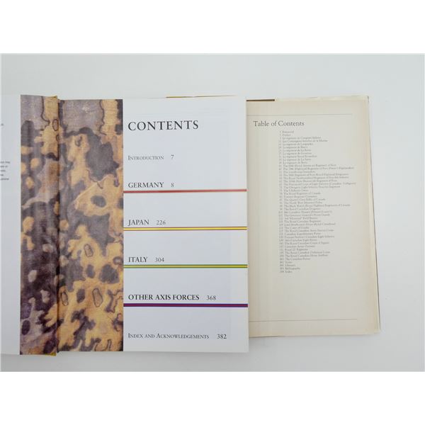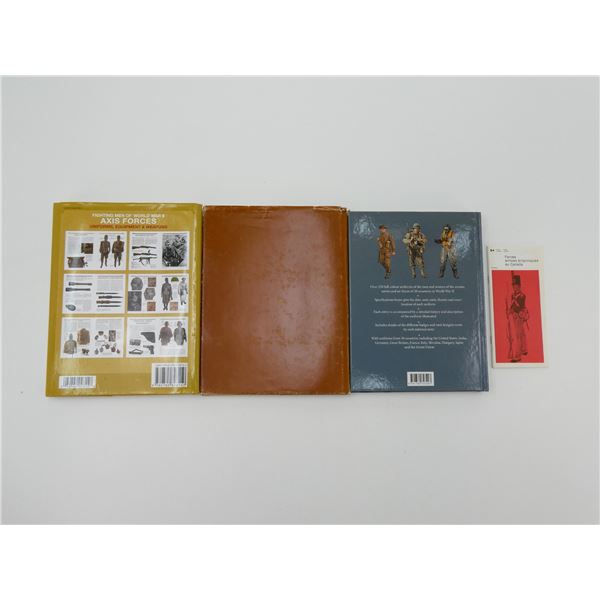 LOT INCLUDES; (1) "FIGHTING MEN OF WORLD WAR II AXIS FORCES" BOOK BY DAVID MILLER, HARD COVER WITH DUST COVER, ISBN-13: 978-0-7858-2815-0, (1) "MILITARY UNIFORMS IN CANADA 1665-1970" BOOK BY JACK L. SUMMERS & RENE CHARTRAND, HARD COVER WITH DUST COVER, ISBN: 0-660-10346-X, (1) "UNIFORMS OF WORLD WAR II" BOOK BY PETER DARMAN, HARD COVER, ISBN: 978-1-78274-329-3 & (1) "BRITISH SOLDIERY IN CANADA" BOOKLET, SOFT COVER. SEE PHOTOS.