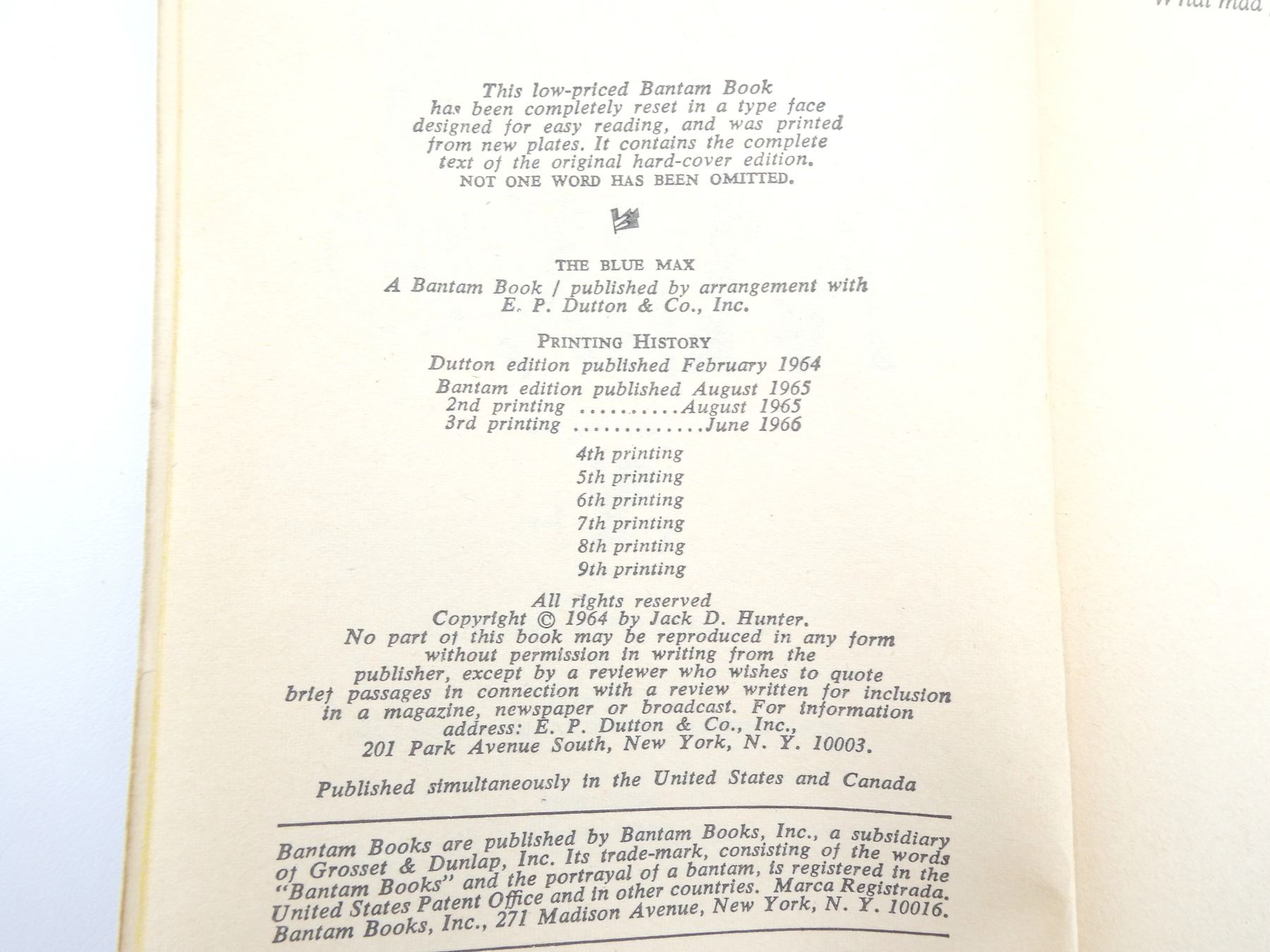 SOFT COVERS, LOT INCLUDES; (1) "A PICTORAL HISTORY OF NAZI GERMANY" BOOK BY ERWIN LEISER, COPYRIGHT 1962, (1)"THE BLUE MAX" BOOK BY JACK D. HUNTER, COPYRIGHT 1964, (1) "THE DARK TUNNEL" BOOK BY ROSS MACDONALD, COPYRIGHT 1944 & (1) "THE BORMANN RECEIPT" BOOK BY MADELAINE DUKE, COPYRIGHT 1977. SEE PHOTOS.
