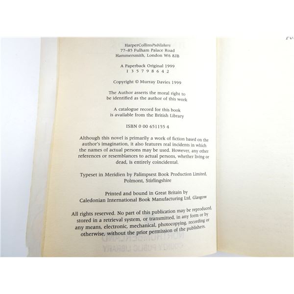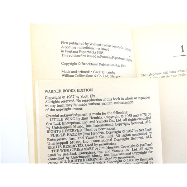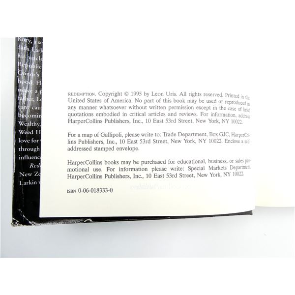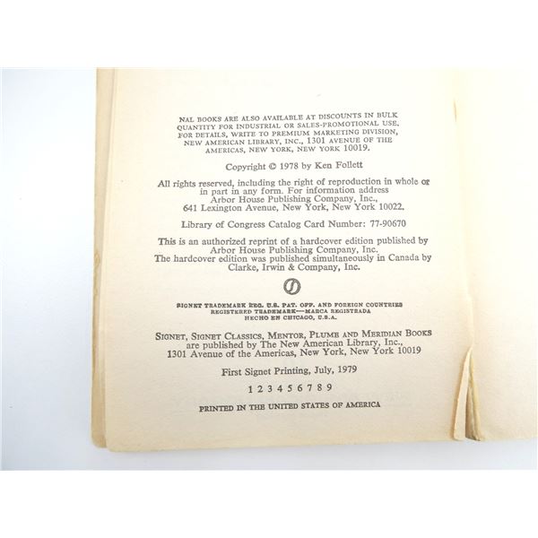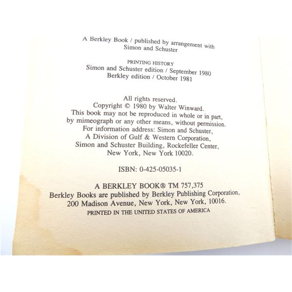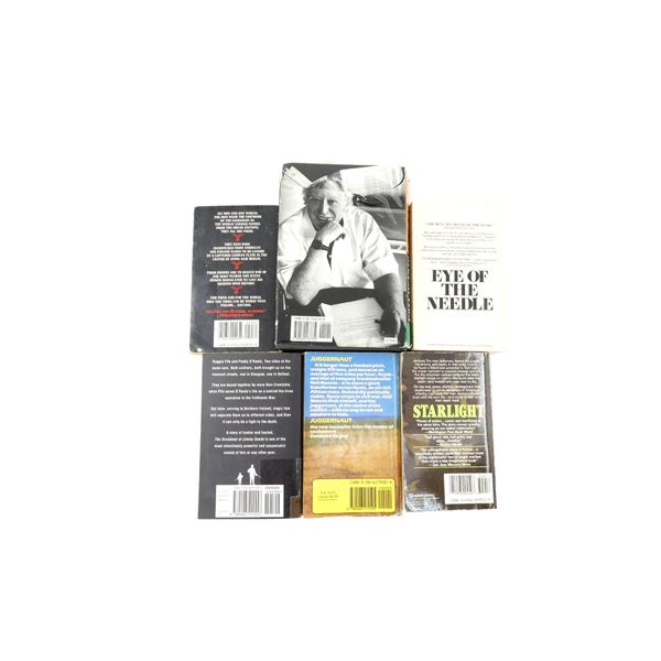LOT INCLUDES; (1) "SEVEN MINUTES PAST MIDNIGHT" BOOK BY WALTER WINWARD, SOFT COVER, ISBN: 0-425-05035-1, (1) "EYE OF THE NEEDLE" BOOK BY KEN FOLLETT, SOFT COVER, COPYRIGHT 1978, (1) "STAR LIGHT" BOOK BY SCOTT ELY, SOFT COVER, ISBN: 0-446-34911-9, (1) "JUGGERNAUT" BOOK BY DESMOND BAGLEY, SOFT COVER, ISBN: 0-00-617250-4, (1) THE DRUMBEAT OF JIMMY SANDS" BOOK BY MURRAY DAVIES, SOFT COVER, ISBN: 0-00-651155-4 & (1) "REDEMPTION, THE EPIC STORY OF TRINITY CONTINUES…" BOOK BY LEON URIS, HARD COVER WITH DUST COVER, ISBN: 0-06-018333-0. SEE PHOTOS.