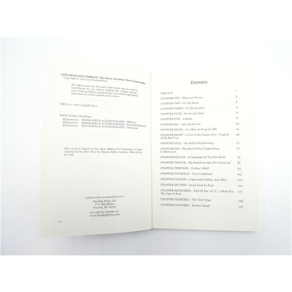 "GOD DOES NOT FORGET: THE STORY OF A BOER WAR COMMANDO" BOOK LOT