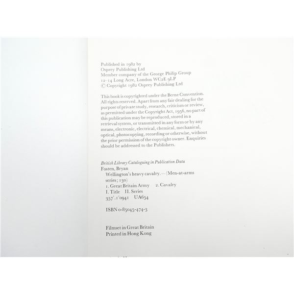 SOFT COVERS, LOT INCLUDES; (1) "WELLINGTON'S LIGHT CAVALRY" BOOK BY BRYAN FOSTEN, ISBN: 0-85045-449-2 & (1) "WELLINGTON'S HEAVY CAVALRY" BOOK BY BRYAN FOSTEN, ISBN: 0-85045-474-3. SEE PHOTOS.