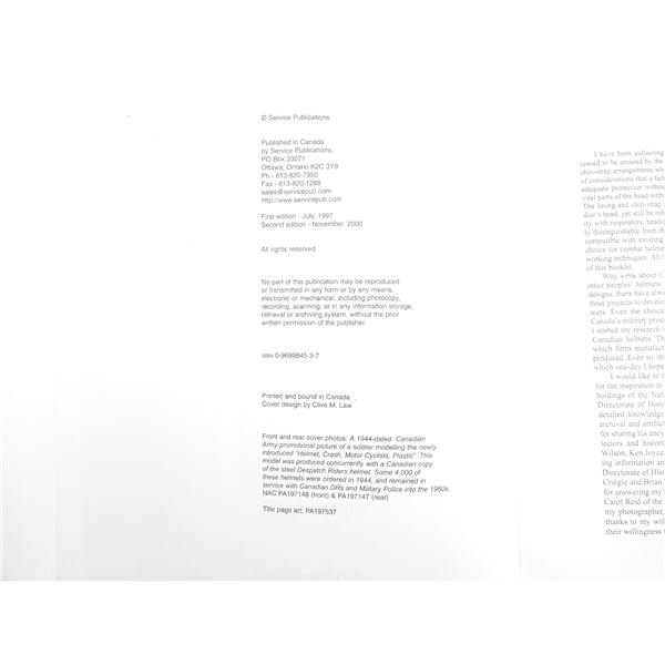 "TIN LIDS, CANADIAN COMBAT HELMETS" BOOK