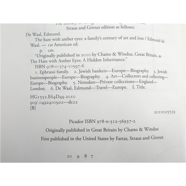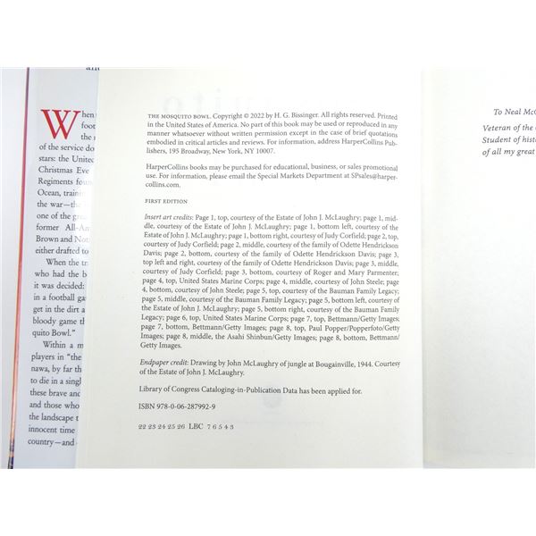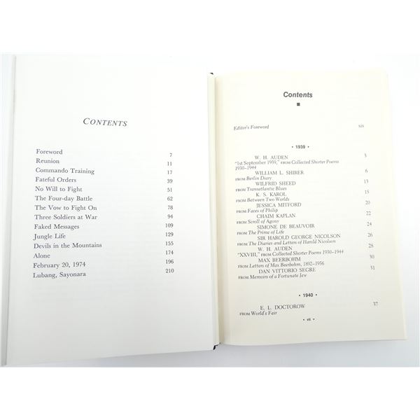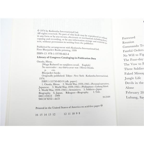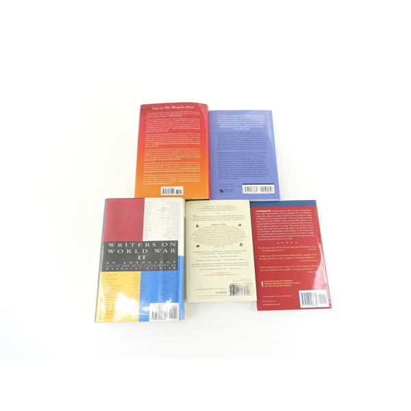 LOT INCLUDES; (1) "NO SURRENDER, MY THIRTY-YEAR WAR" BOOK BY HIROO ONODA, SOFT COVER, ISBN: 978-1-55750-663-4, "THE HARE WITH AMBER EYES, A HIDDEN INHERITANCE" BOOK BY EDMUND DE WAAL, SOFT COVER, ISBN: 978-0-312-56937-2, (1) "WRITERS ON WORLD WAR II, AN ANTHOLOGY" BOOK BY VARIOUS AUTHORS, HARD COVER WITH DUST COVER, ISBN: 0-670-82630-8, (1) "TRUE CANADIAN HEROES IN THE AIR" BOOK BY ARTHUR BISHOP, SOFT COVER, ISBN: 1-55267-867-9 & (1) "THE MOSQUITO BOWL, A GAME OF LIFE AND DEATH IN WORLD WAR II" BOOK BY BUZZ BISSINGER, HARD COVER WITH DUST COVER, ISBN: 978-0-06-287992-9. SEE PHOTOS.