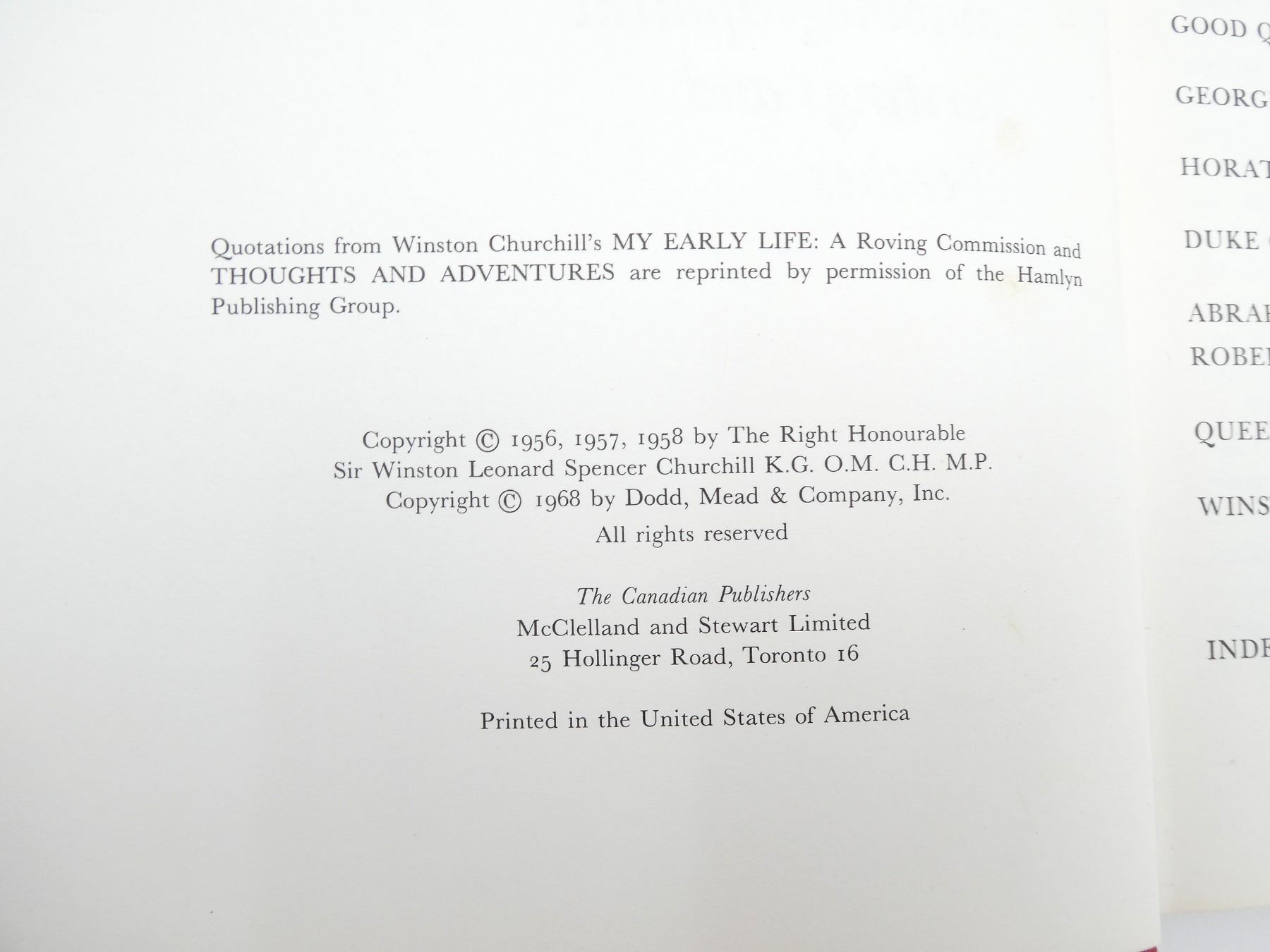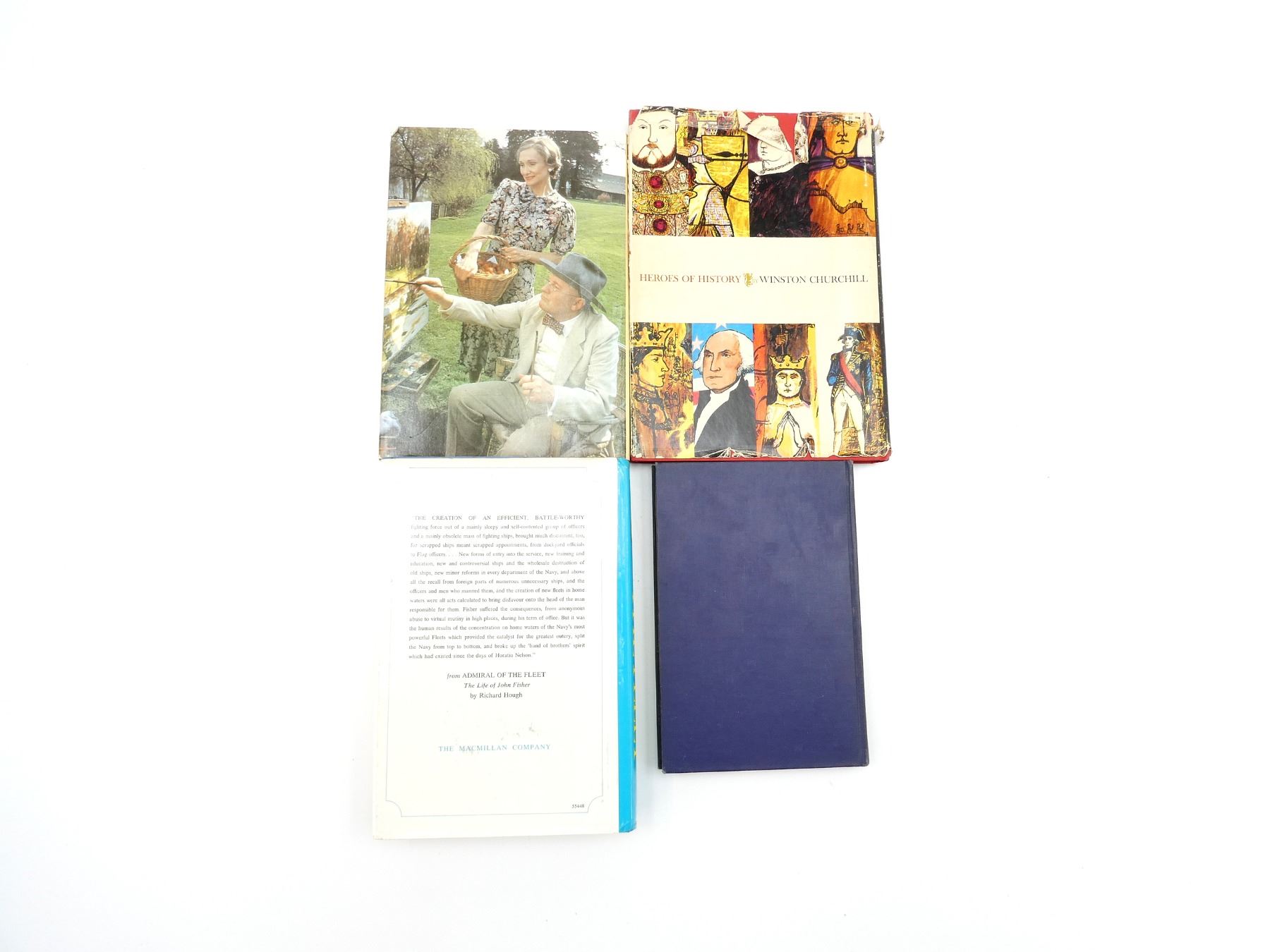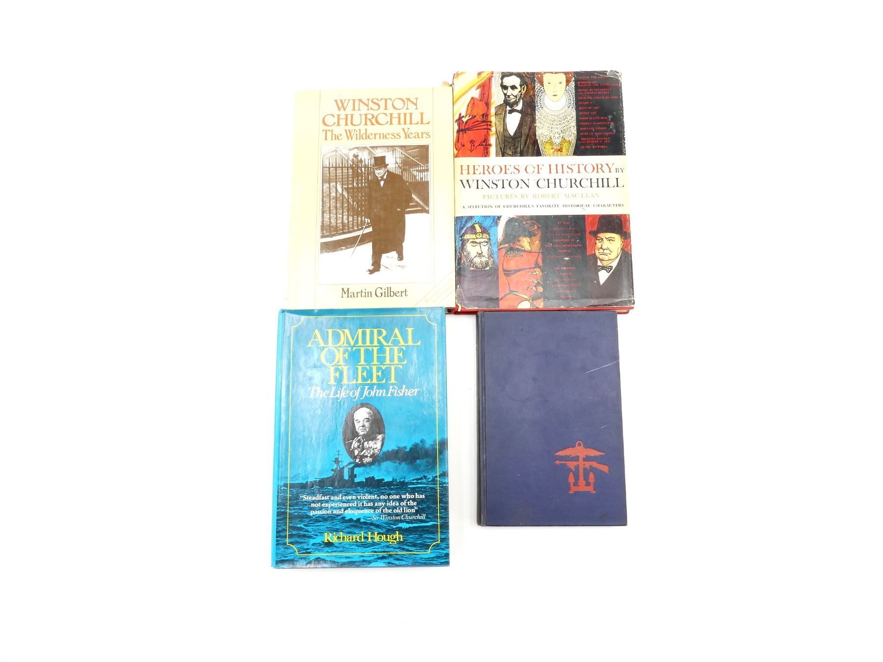 LOT INCLUDES; (1) "COMBINED OPERATIONS, THE OFFICIAL STORY OF THE COMMANDOS" BOOK, HARD COVER, COPYRIGHT 1943, (1) "ADMIRAL OF THE FLEET, THE LIFE OF JOHN FISHER" BOOK BY RICHARD HOUGH, HARD COVER WITH DUST COVER, COPYRIGHT 1969, (1) "HEROES OF HISTORY" BOOK BY WINSTON CHURCHILL, HARD COVER WITH DUST COVER, COPYRIGHT 1968 & (1) "WINSTON CHURCHILL, THE WILDERNESS YEARS" BOOK BY MARTIN GILBERT, HARD COVER WITH DUST COVER, ISBN: 0-333-32564-8. SEE PHOTOS.