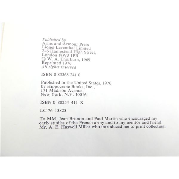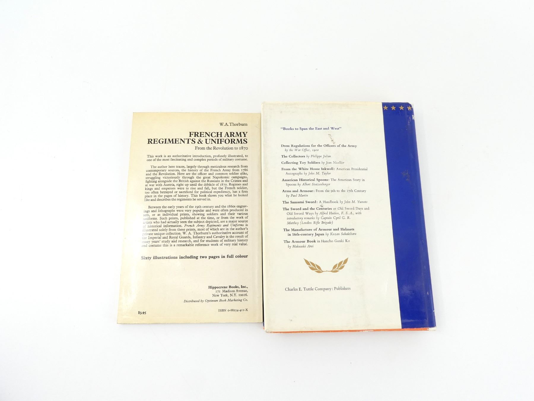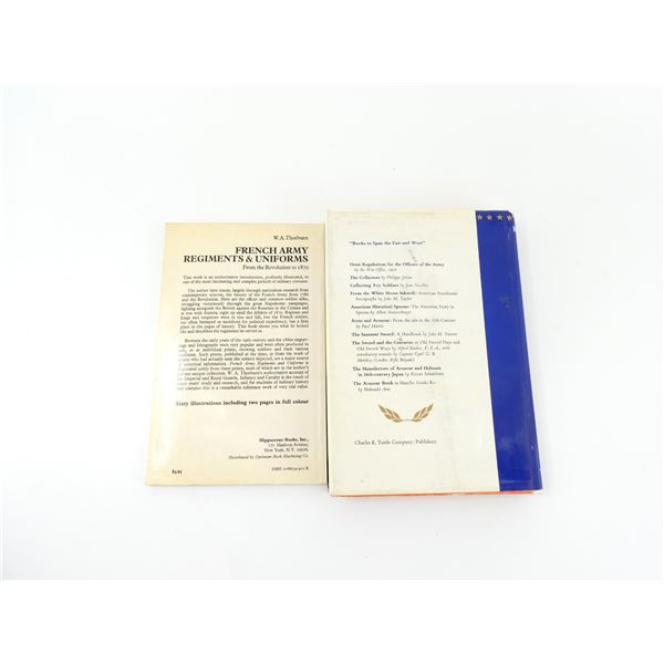 (1) "FRENCH ARMY REGIMENTS & UNIFORMS FROM THE REVOLUTION TO 1870" BOOK BY W.A. THORBURN, SOFT COVER, ISBN: 0-88254-411-X & (1) "UNITED STATES MILITARY MEDALS & RIBBONS" BOOK BY PHILIP K. ROBLES, HARD COVER WITH DUST COVER, ISBN: 0-8048-0048-0. SEE PHOTOS.
