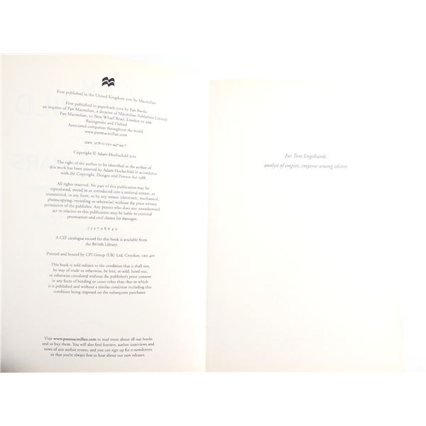 (1) BY ADAM HOCHSCHILD, SOFT COVER, ISBN: 978-0-330-44744-7. SEE PHOTOS.