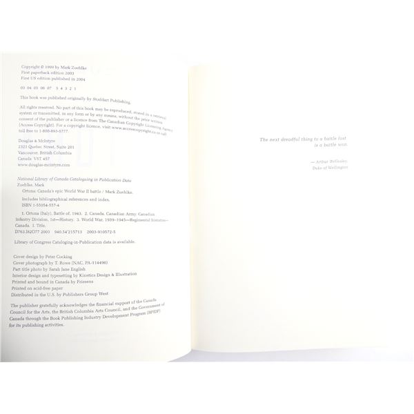 "ORTONA, CANADA'S EPIC WWII BATTLE" BOOK