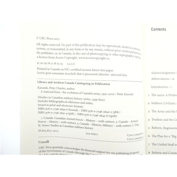 "A NATIONAL FORCE, THE EVOLUTION OF CANADA'S ARMY, 1950-2000" BOOK