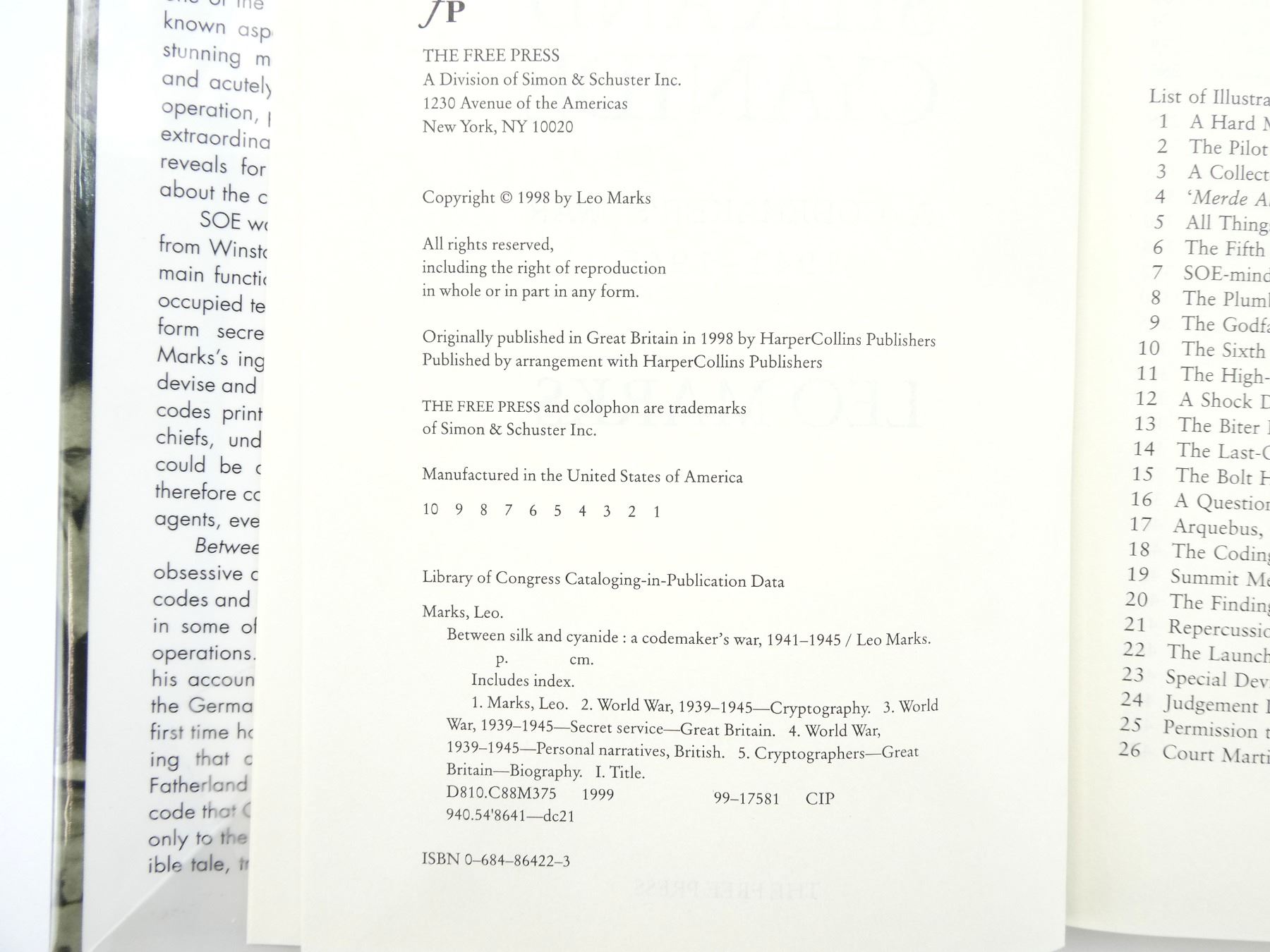 (1) BY LEO MARKS, HARD COVER WITH DUST COVER, ISBN: 0-684-86422-3. SEE PHOTOS.