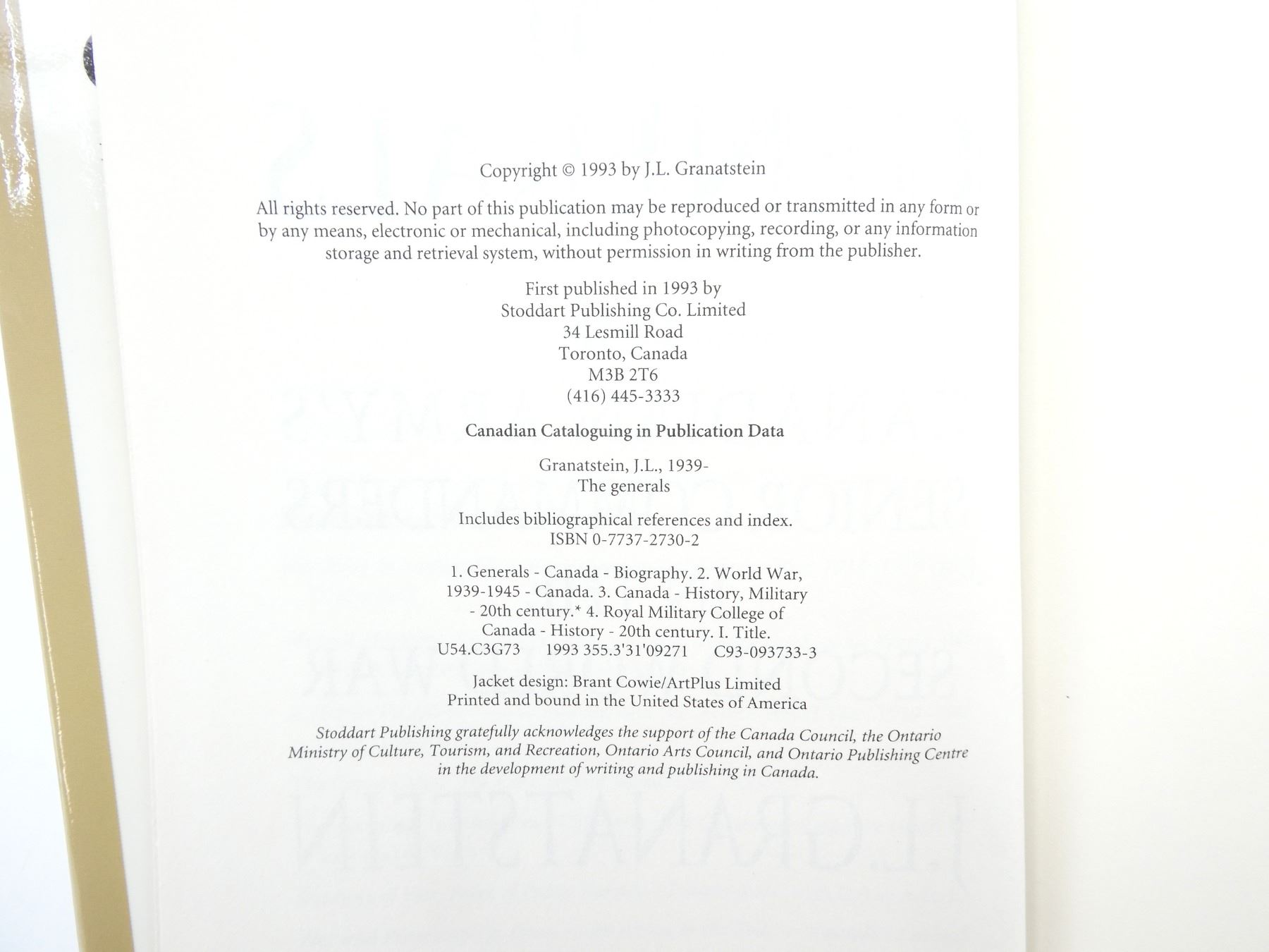 Lot 34107 "THE GENERALS, THE CANADIAN ARMY'S SENIOR COMMANDERS IN THE SECOND WORLD WAR" BOOK
