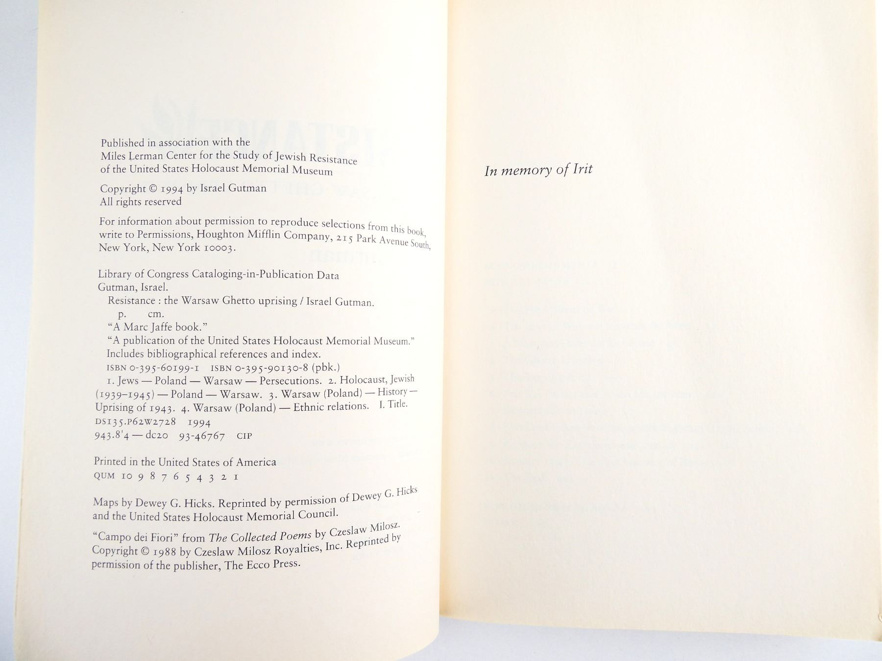 "RESISTANCE, THE WARSAW GHETTO UPRISING" BOOK
