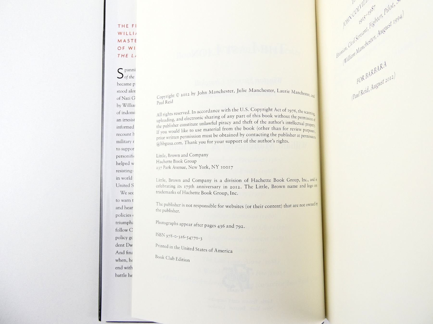 (1) BY WILLIAM MANCHESTER & PAUL REID, HARD COVER WITH DUST COVER, ISBN: 978-0-316-54770-3. SEE PHOTOS.
